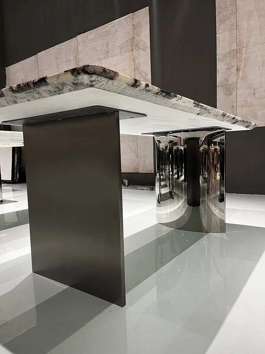 86.61in*39.37in Natural Snow Mountain Flying Fox Luxury Stone Dining Table