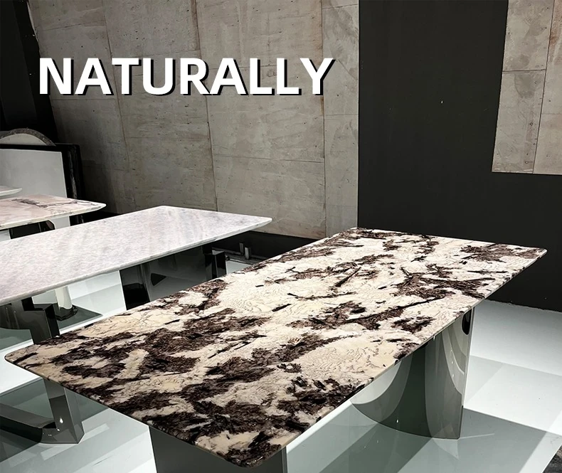 WARM Imported Snow Mountain Flying Fox Silver Fox Blue Sky Mountain Twilight Orchid Luxury Stone Dining Table - Premium Natural Marble High-End Dining Table