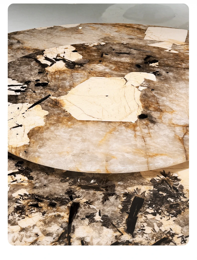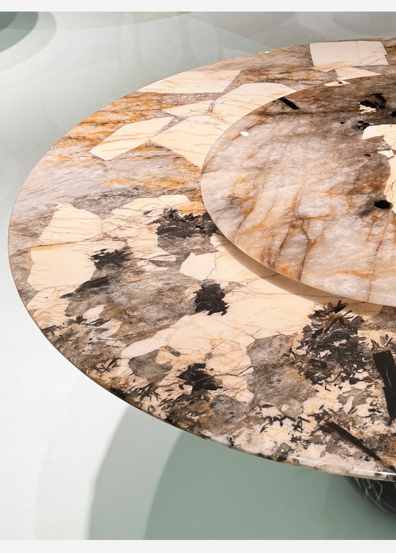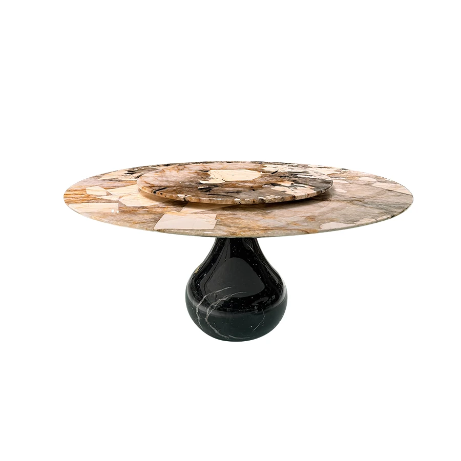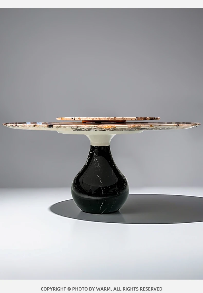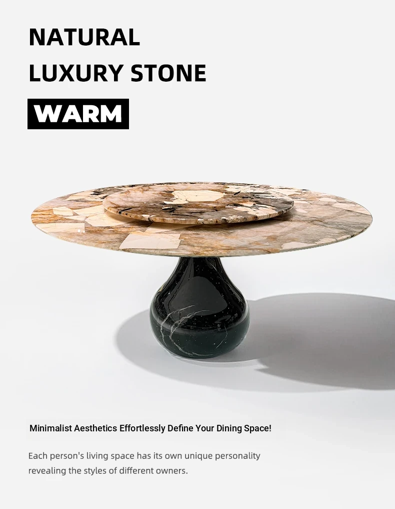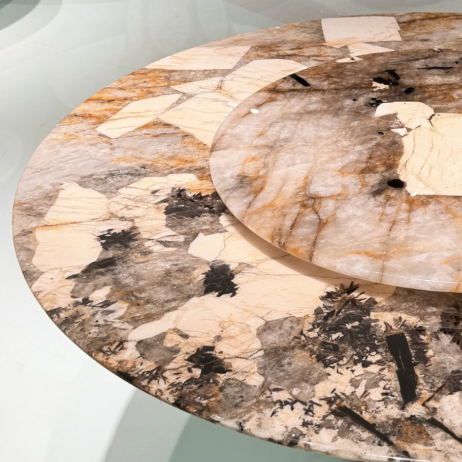 WARM Pandora Luxury Old Mine Villa Imported Premium Natural Marble Round Dining Table - High-End Dining Table from Foshan
