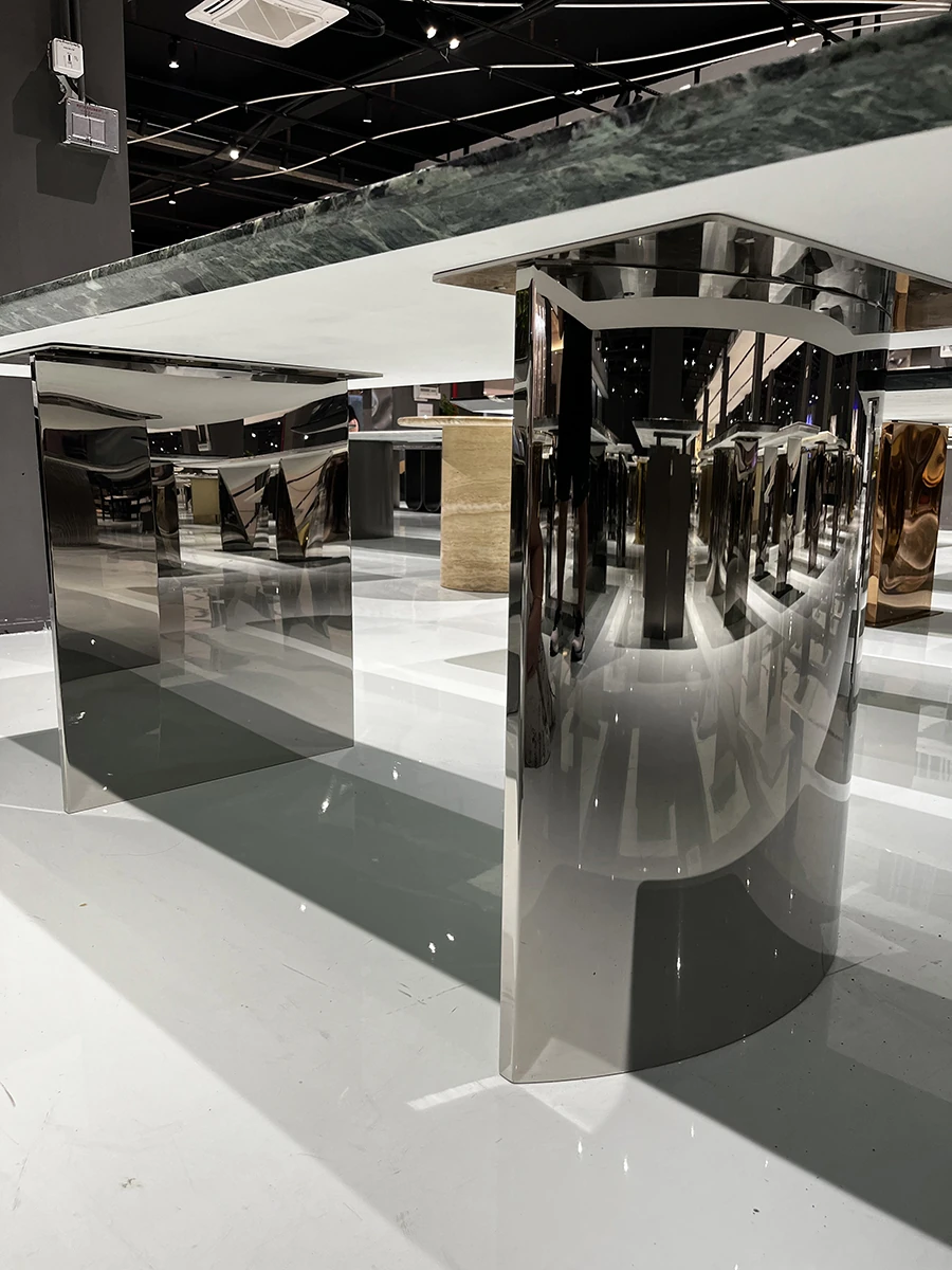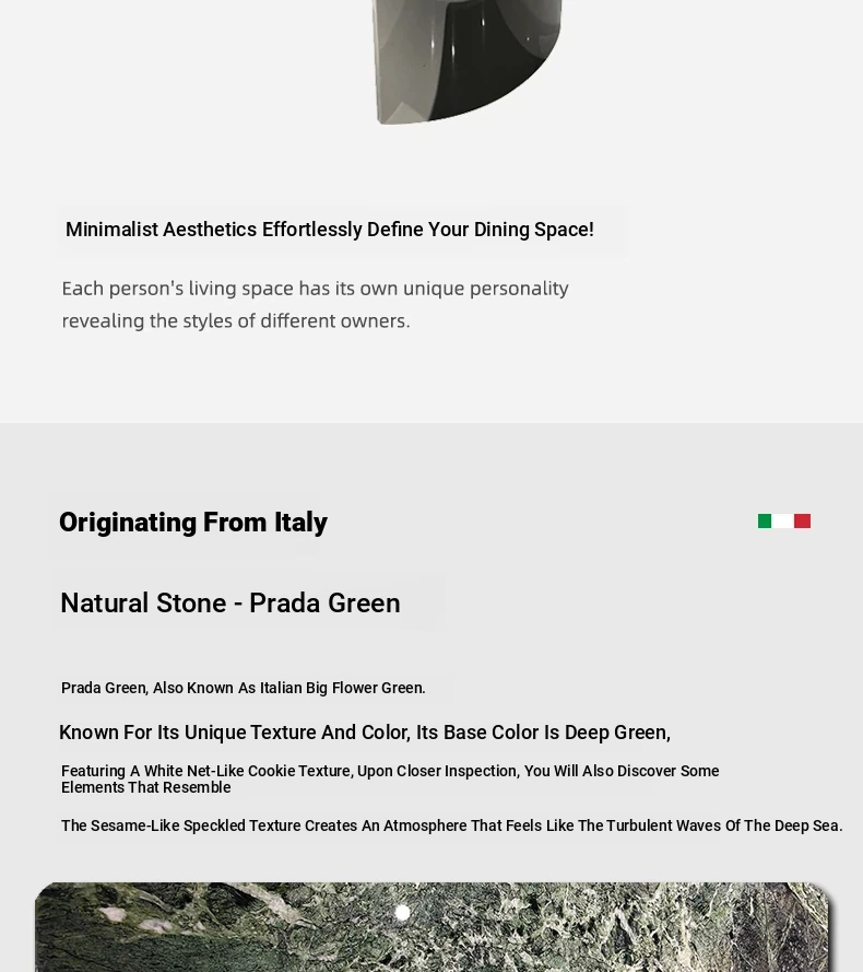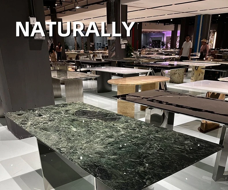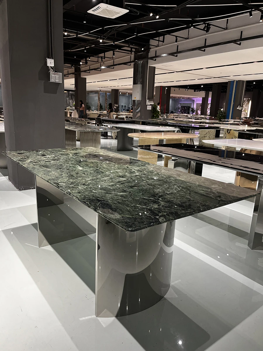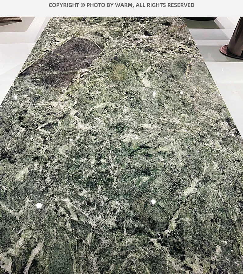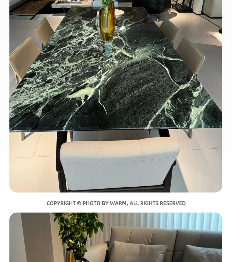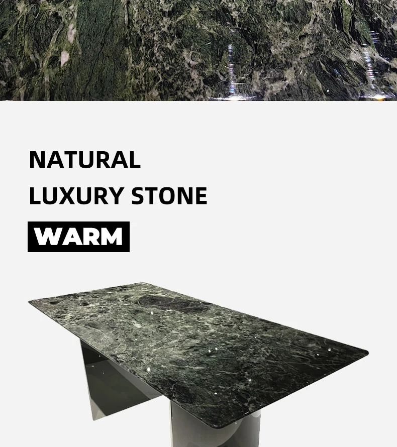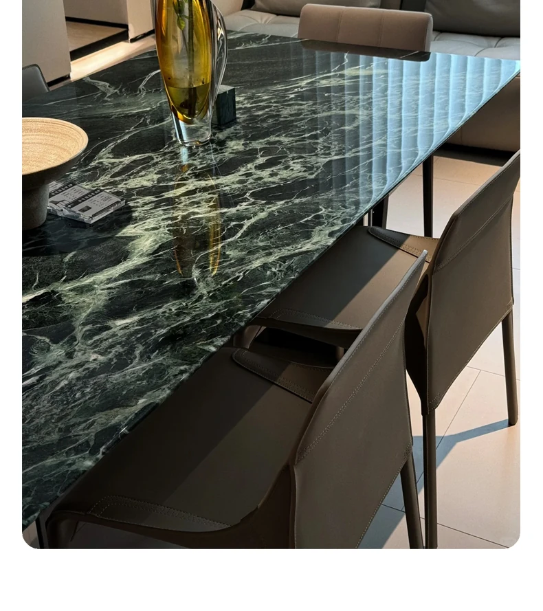 WARM Prada Green Luxury Stone Dining Table - Imported High-End Natural Marble Rectangular Table for Villas - Elegant and Stylish Design, Perfect for Upscale Dining Experiences in Foshan.