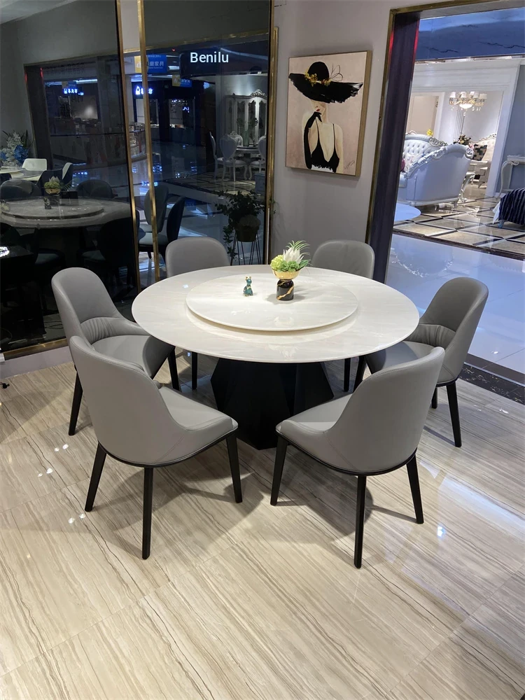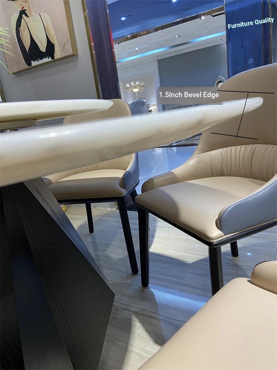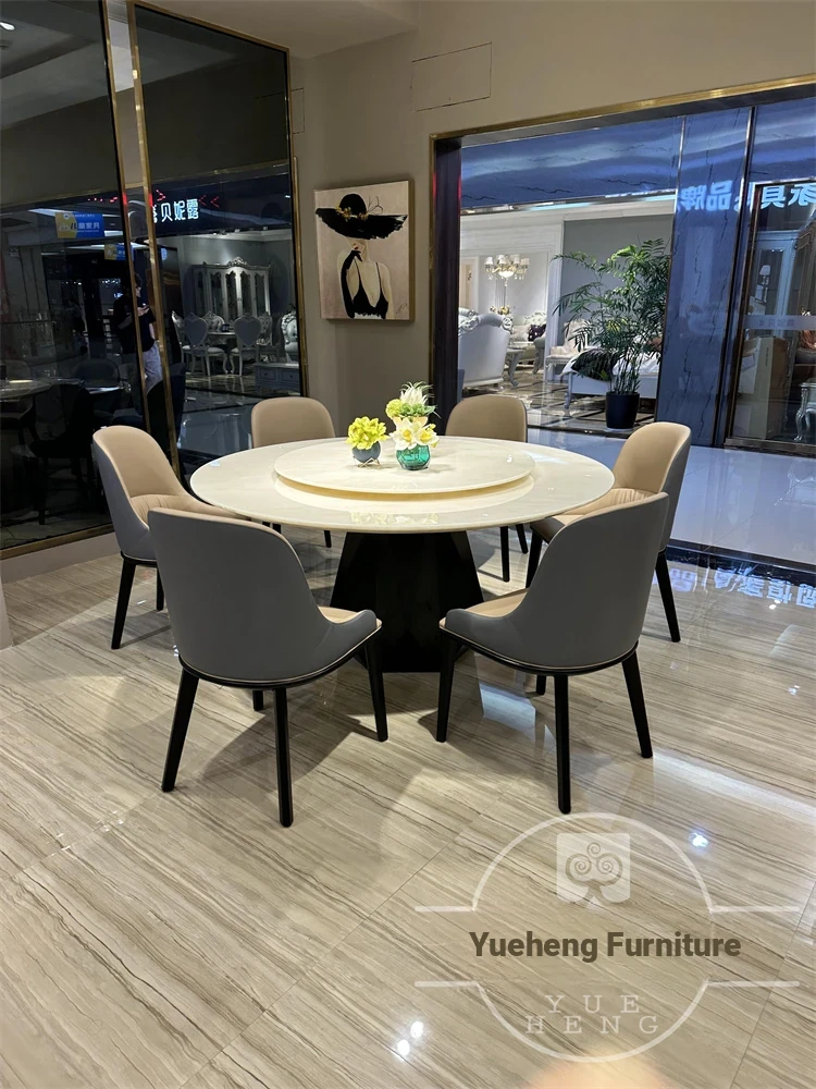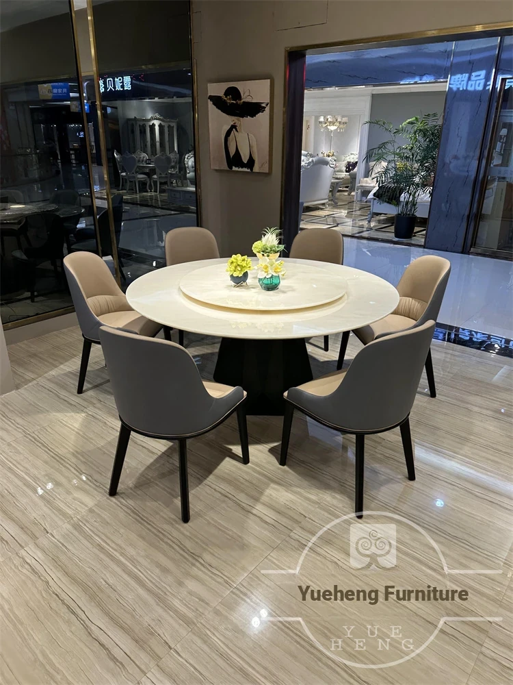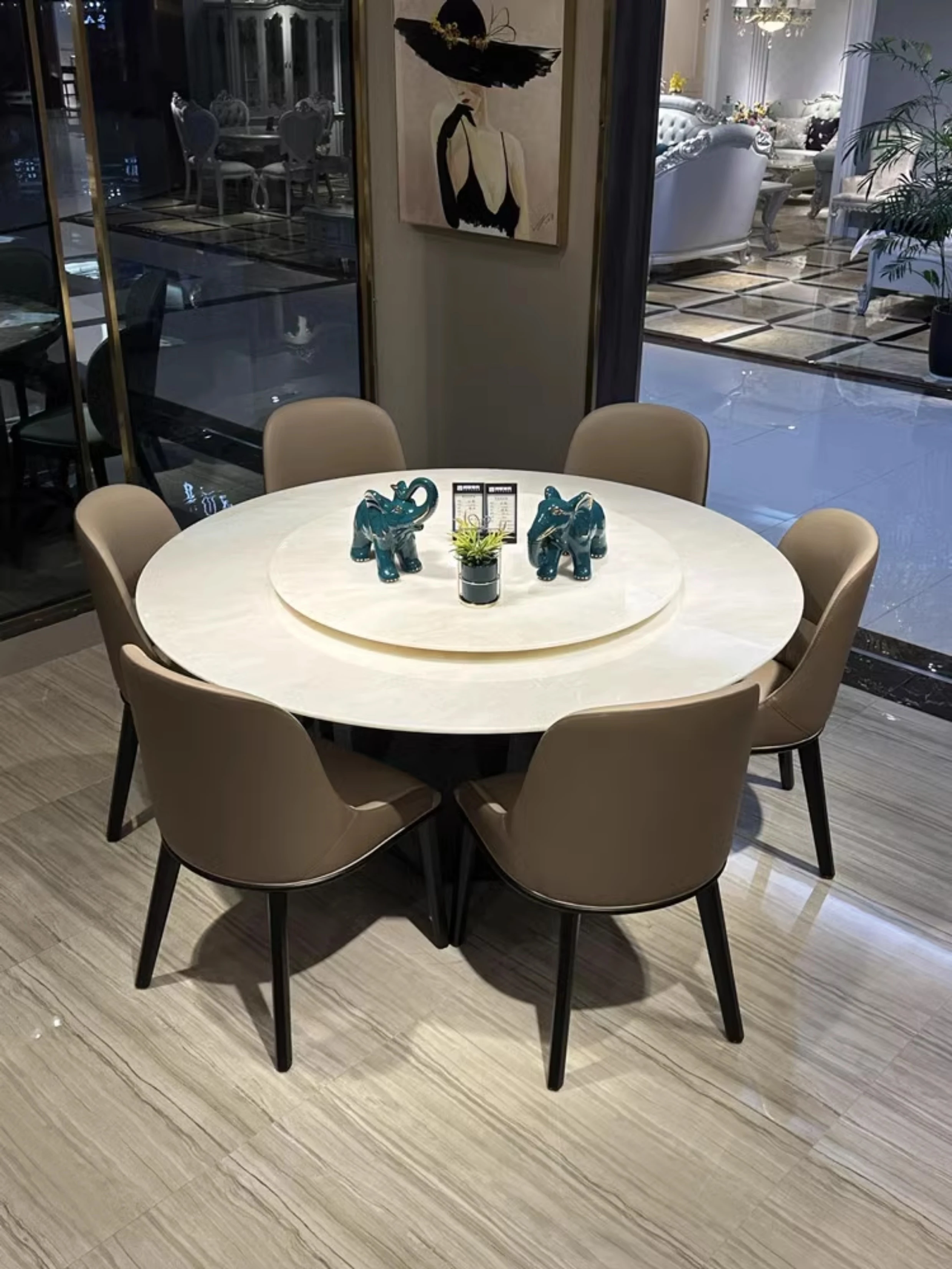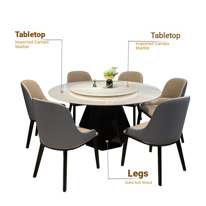 Import Royal ice Jade Table six chairs 59.06 ins table with 90 turntable(Third-generation upgrade)