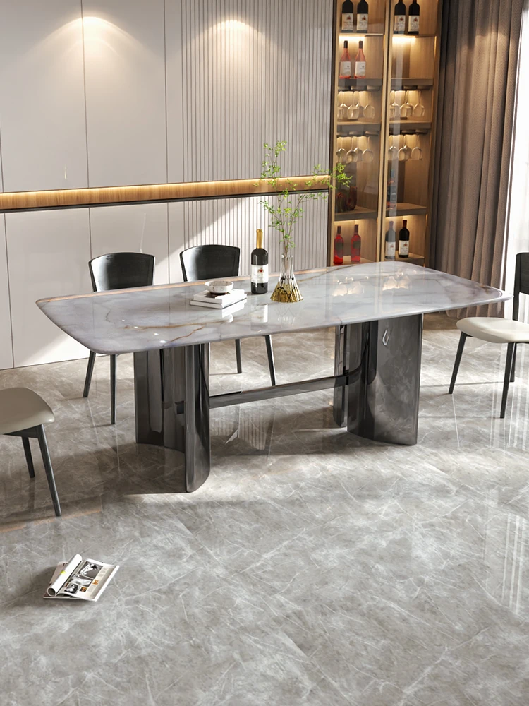 Rongjiang Snow Mountain Blue Luxury Marble Dining Table - Italian Minimalist Design, High-End Villa Home Use, Stylish Drop-Shaped Dining Table for Elegant Living Spaces