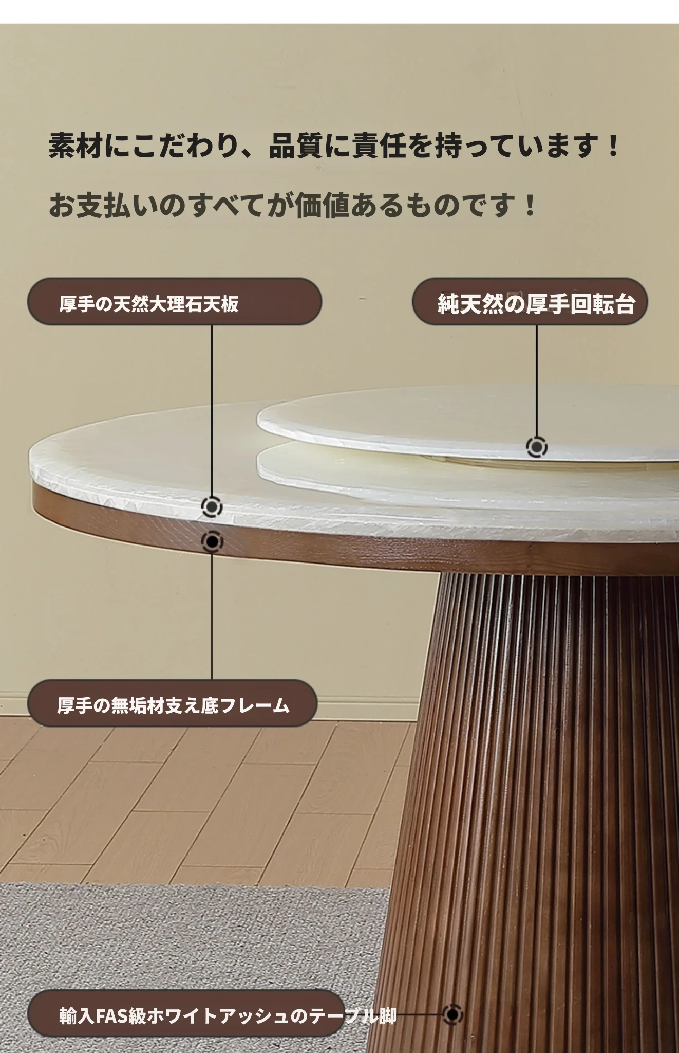 1.5メートル回転盤あり【本物の純天然大理石天板】