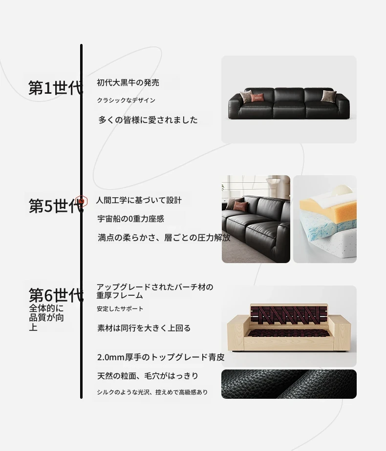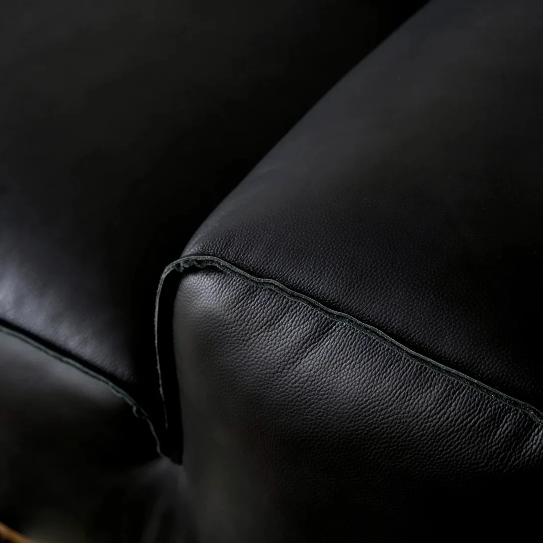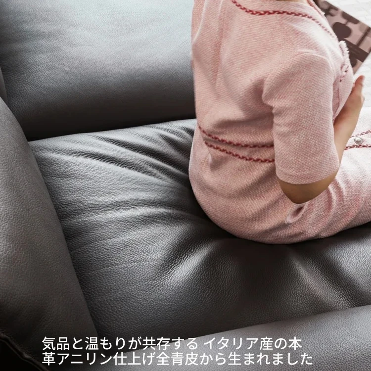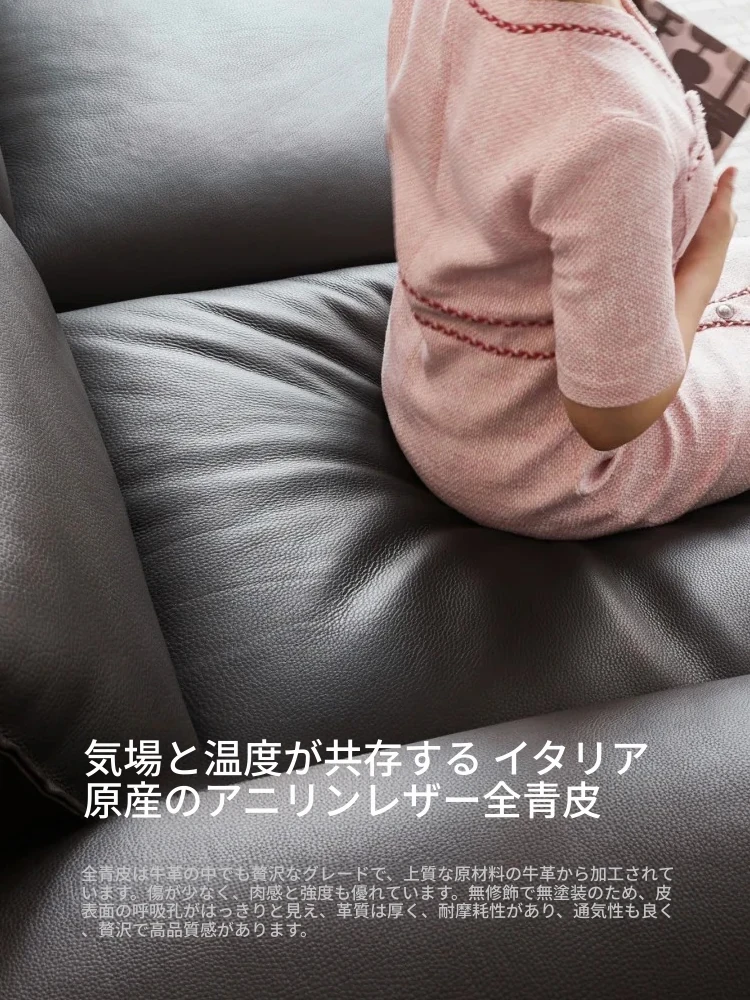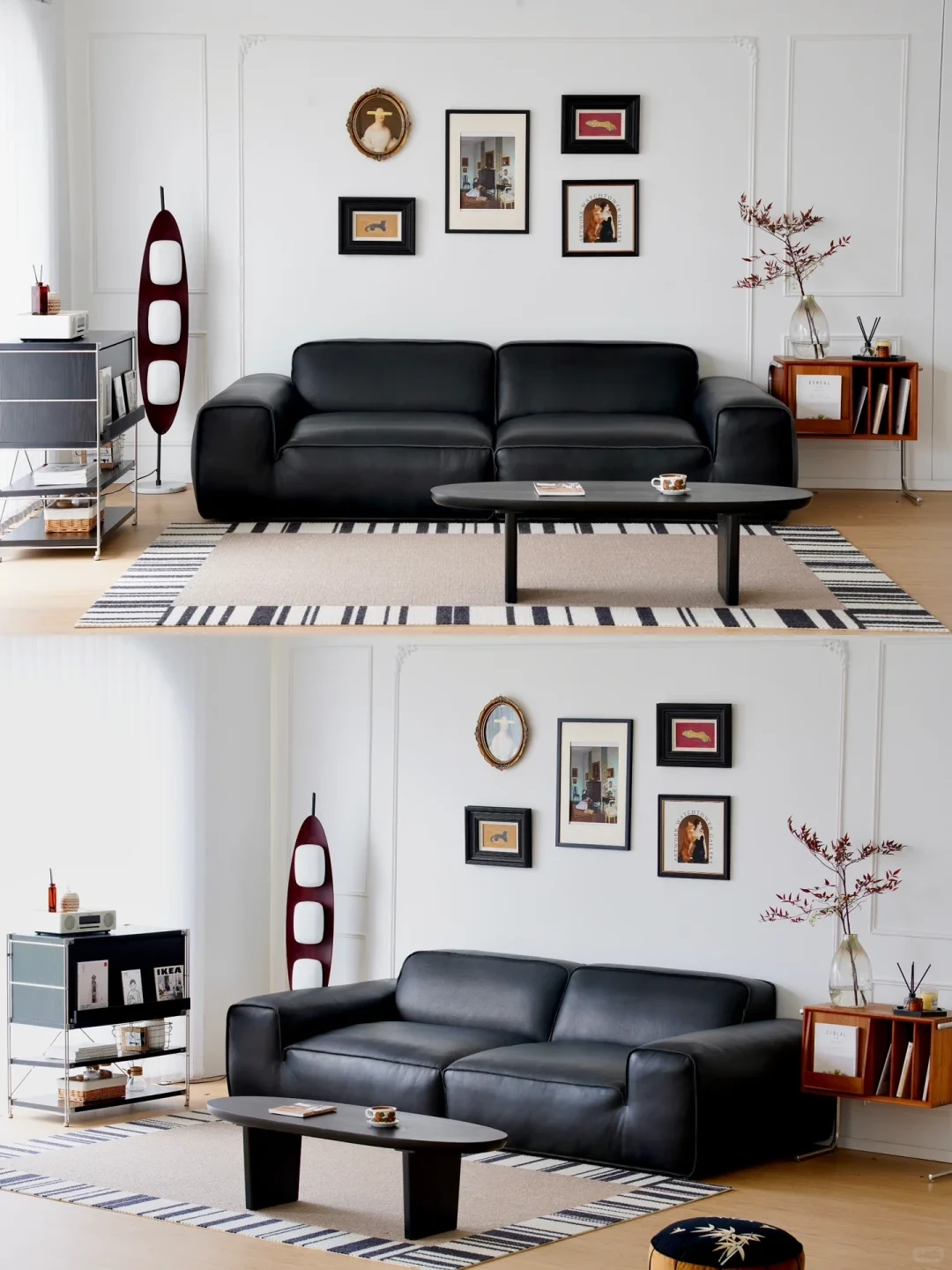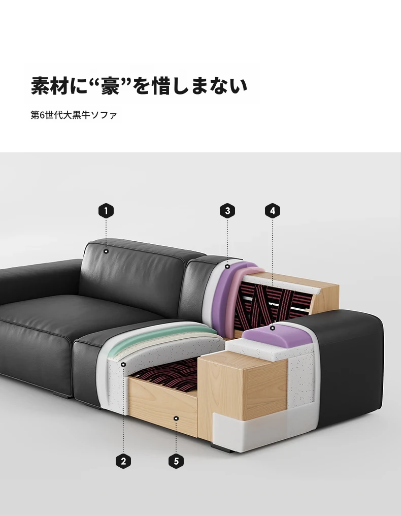2025年新作!イタリアンスタイルの大黒牛革ソファセット - ブラックトーフブロックデザイン、小型リビングに最適、最高級の本革使用で贅沢な座り心地を実現!