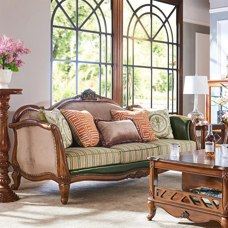 アメリカンスタイルの本革ソファ!リビングにぴったりな13点セット、欧風デザインの布製ソファ。シンプルでレトロ、小型住宅にも最適な家具。快適さとスタイルを両立したおしゃれな選択肢!