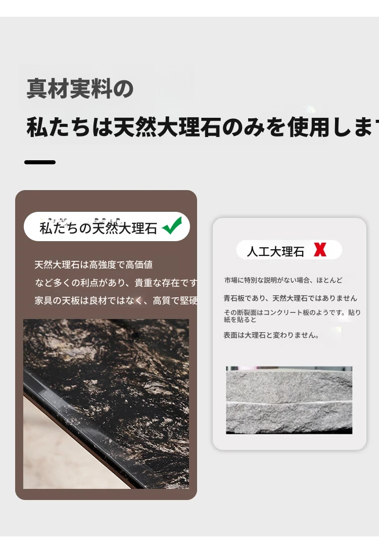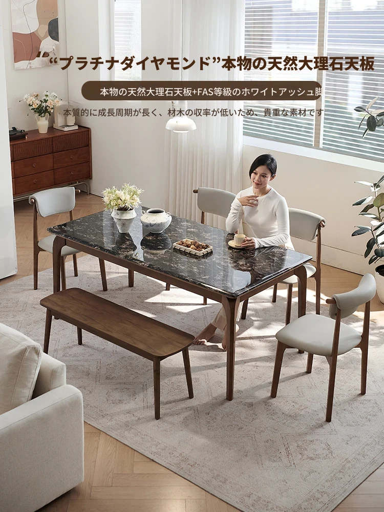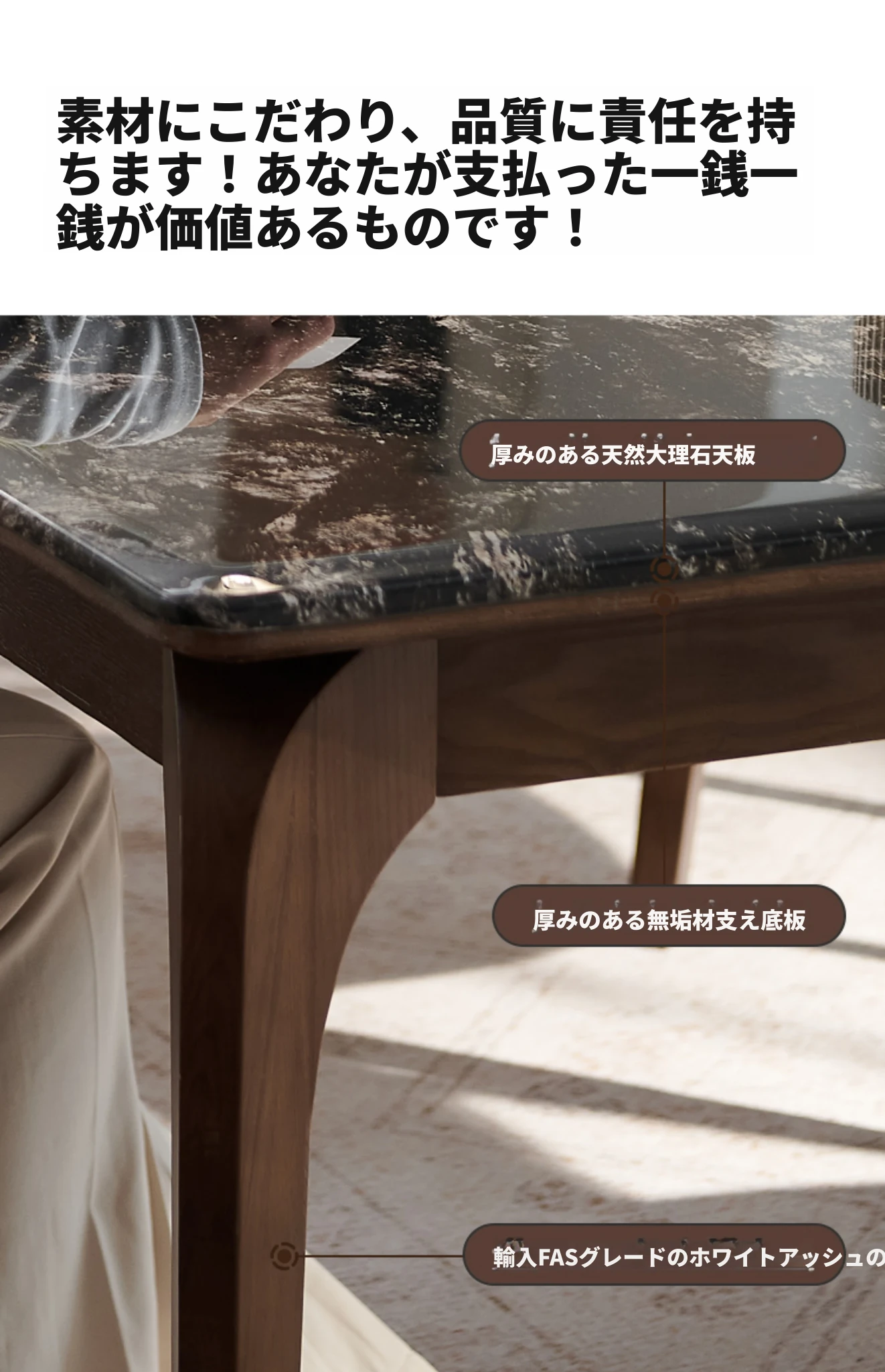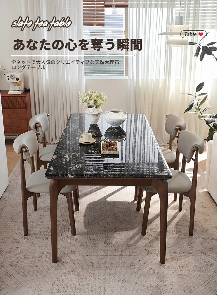 【1.8メートルプラチナダイヤ天然大理石】本物の無垢材ロングテーブル