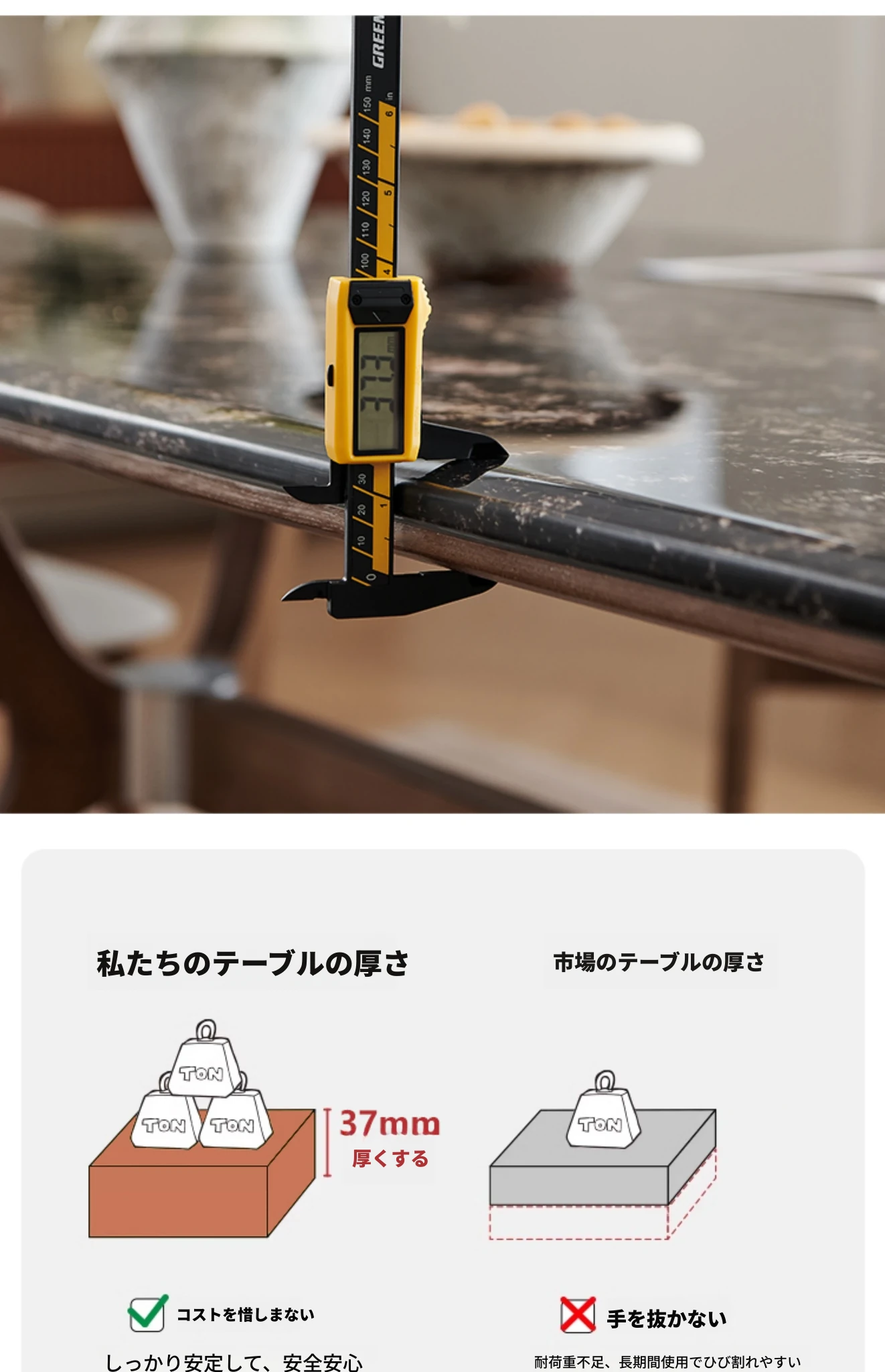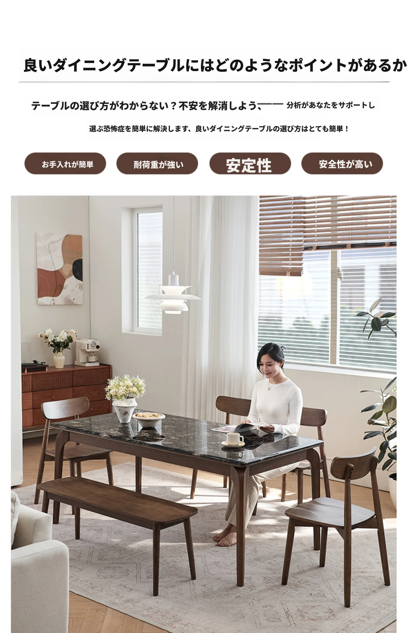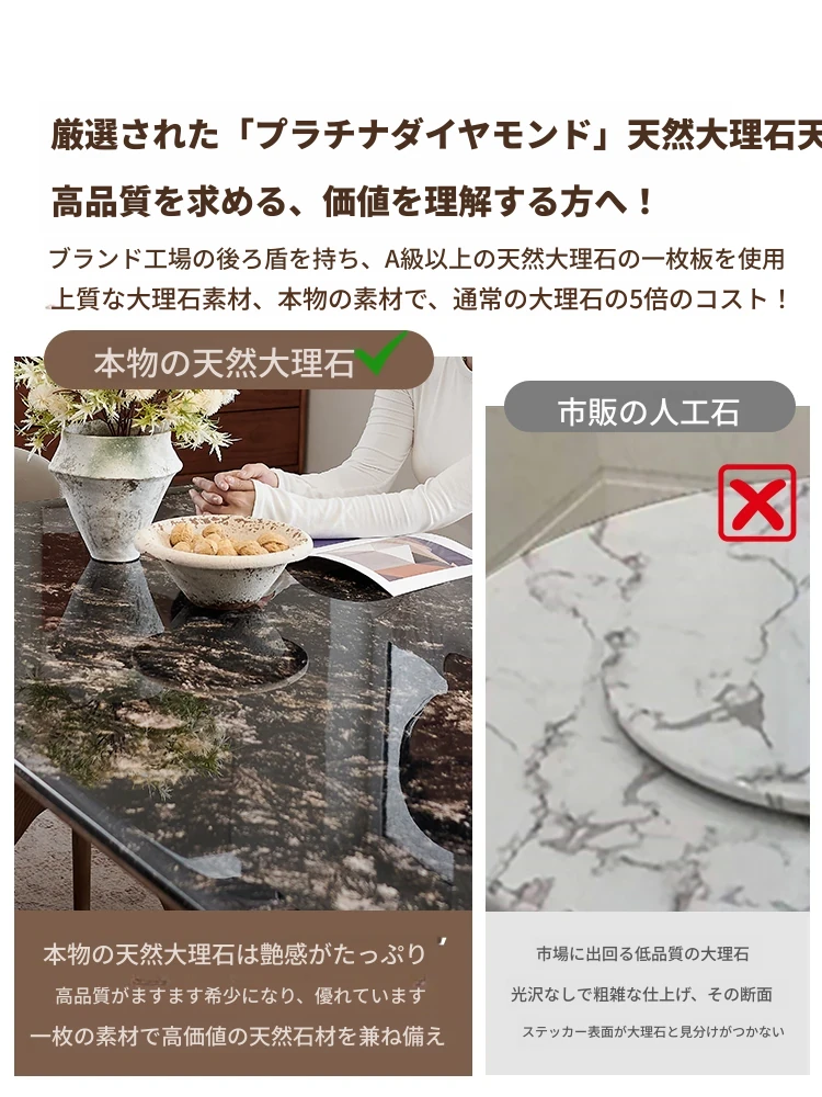 【1.8メートルプラチナダイヤ天然大理石】本物の無垢材ロングテーブル
