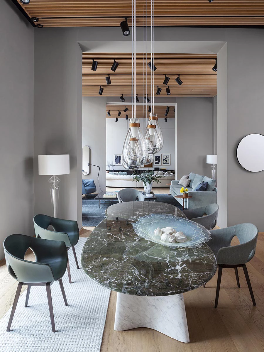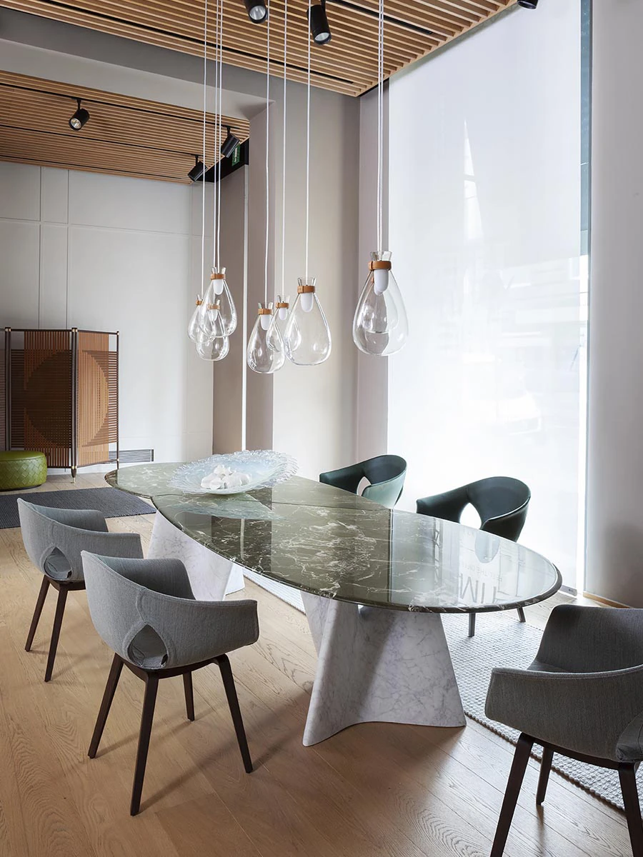 3.4メートルのダイニングテーブル【輸入プラダグリーン大理石】