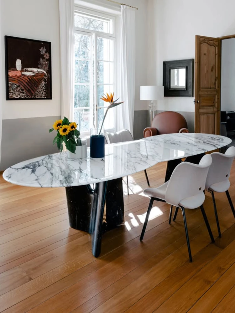 ダイチェン イタリアンミニマル 天然大理石ラウンドダイニングテーブル 高級感漂うデザイナーズテーブルで、洗練された空間を演出。あなたの食卓を特別なひとときに変えてくれる逸品!