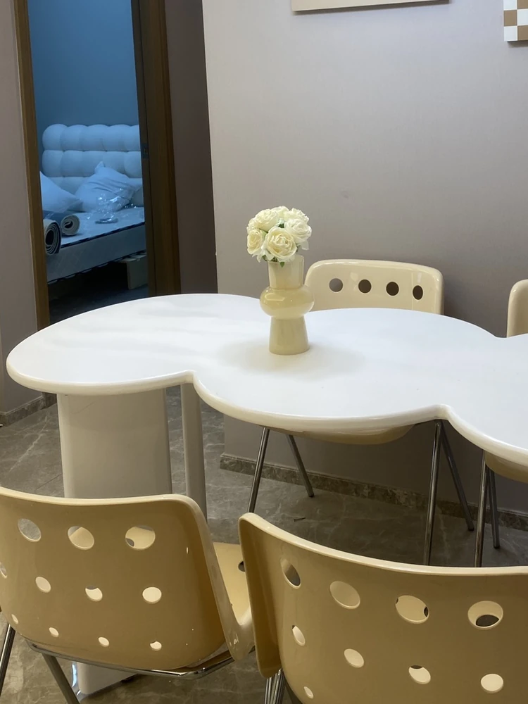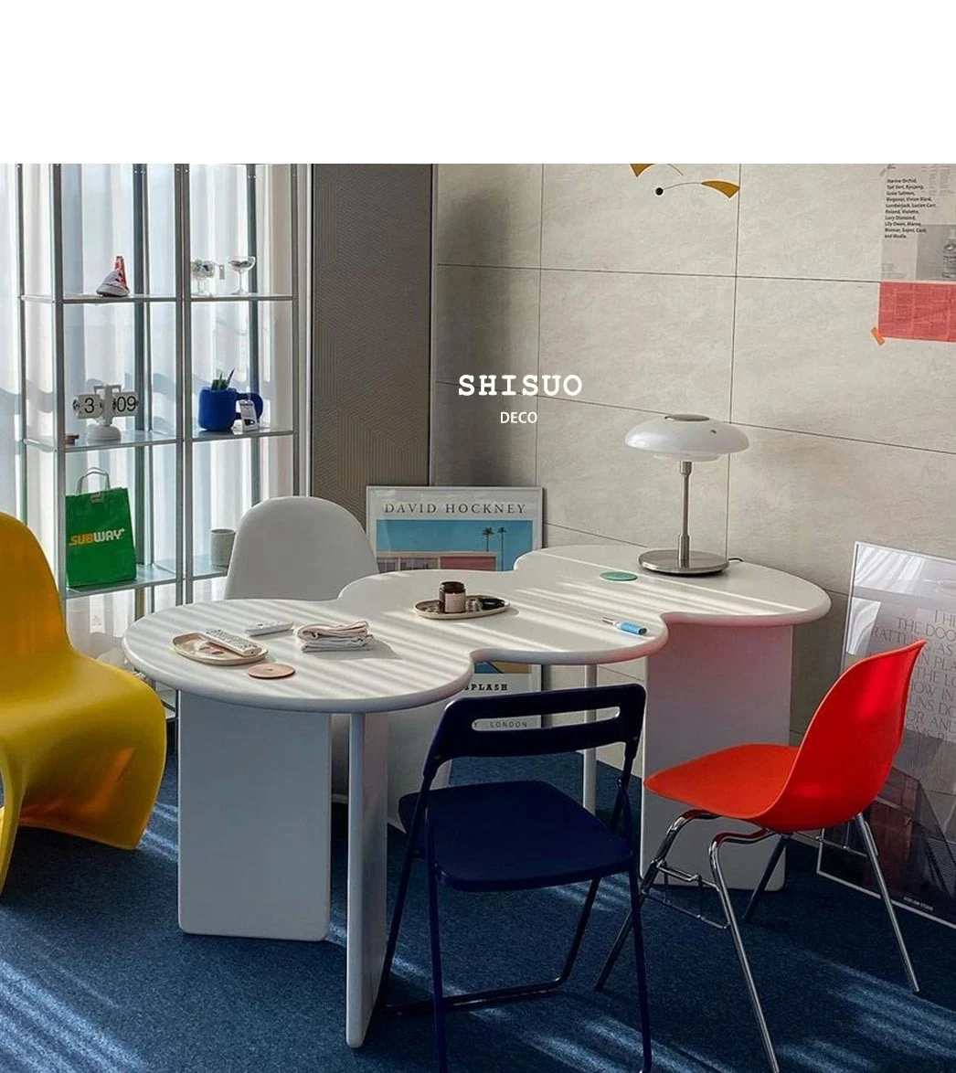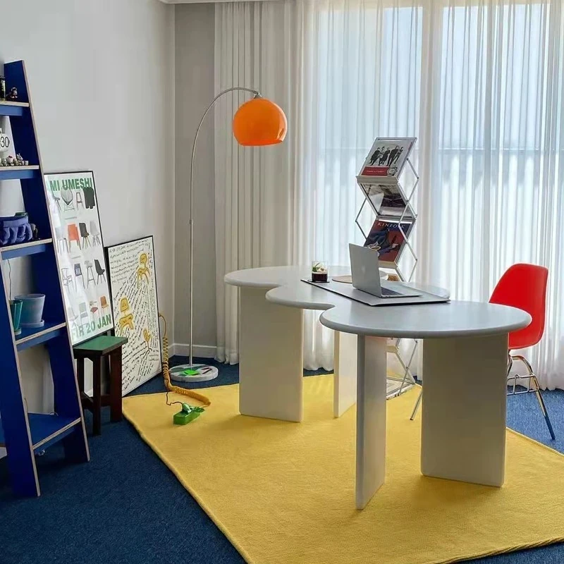 インスタ風カラフルデザインのデザイナー製不規則型ダイニングテーブル!多機能でシンプルなエレガントなオーバルテーブル。おしゃれなオフィスやリビングにぴったり!