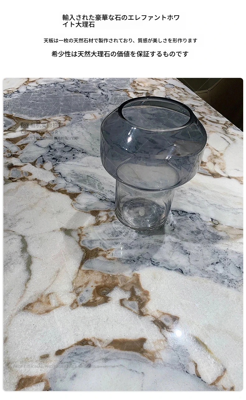 輸入天然大理石の輸入品、ベネチアブラウンの高級ダイニングテーブル。デザイナーが手掛けた高級別荘向け、洗練されたイタリアンラグジュアリーの食卓を演出します。上質な素材で特別なひとときをお楽しみください。