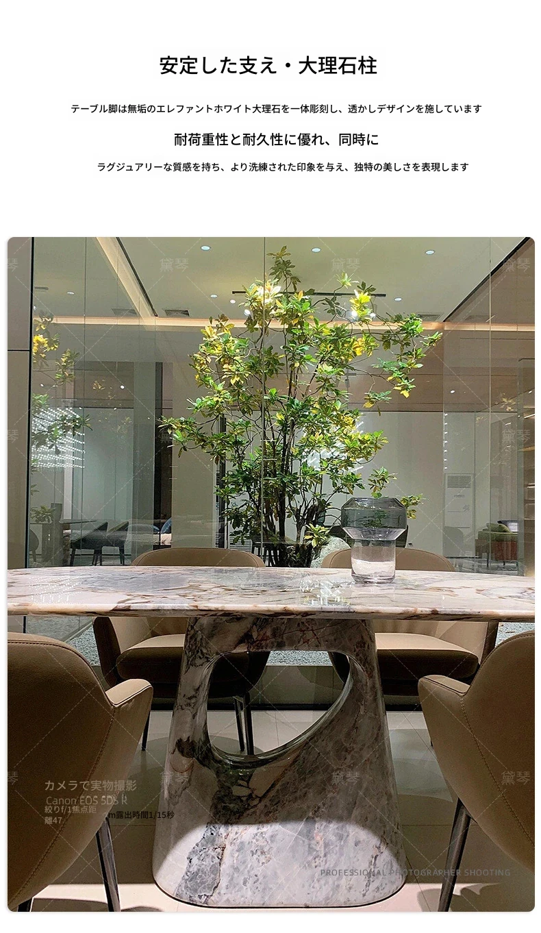 阅恒家具の天然大理石を使用した高級フィンディホワイトロングテーブル - 新しいデザインの無垢材とステンレス脚の長方形テーブル、家庭に最適!
