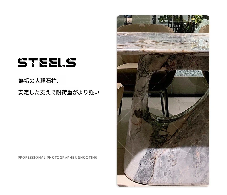 モダンでシンプルな大理石ダイニングテーブルセット!ステンレス製の長方形テーブルは、さまざまなサイズの部屋にぴったり。高級感あふれる岩板のデザインで、食卓を華やかに演出します。