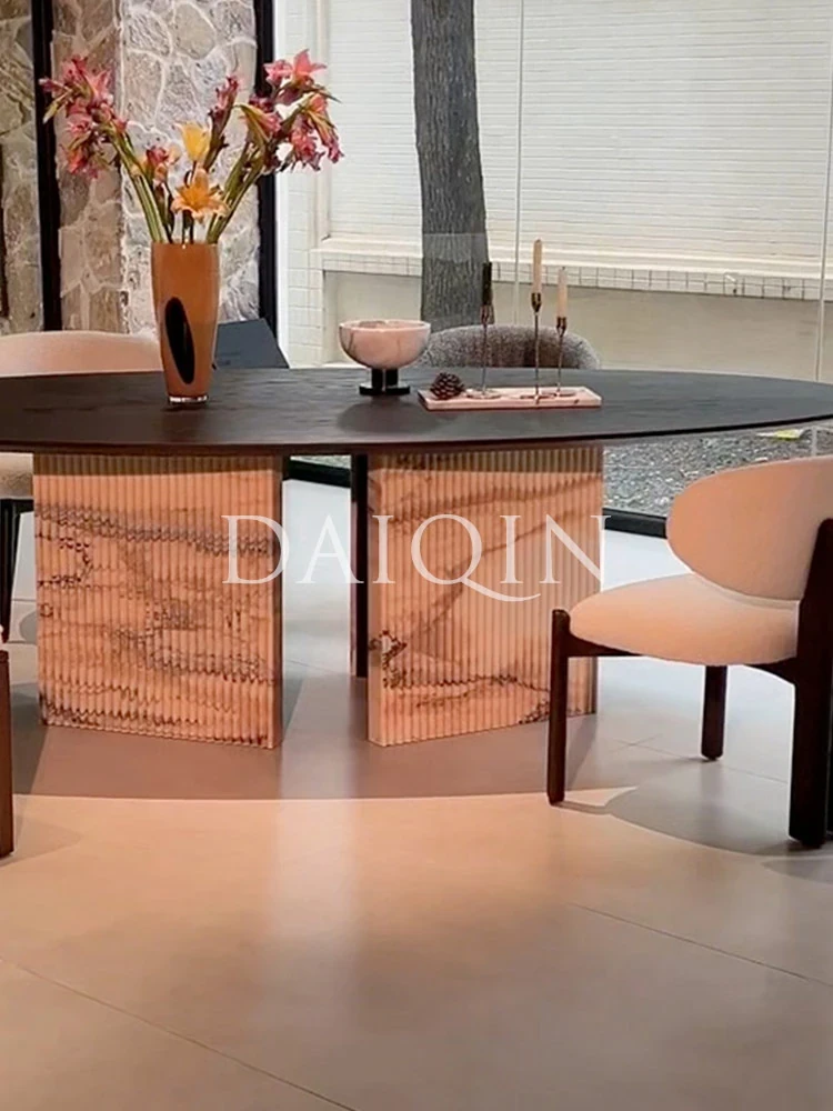 輸入された姻粉大理石の無垢材ダイニングテーブル