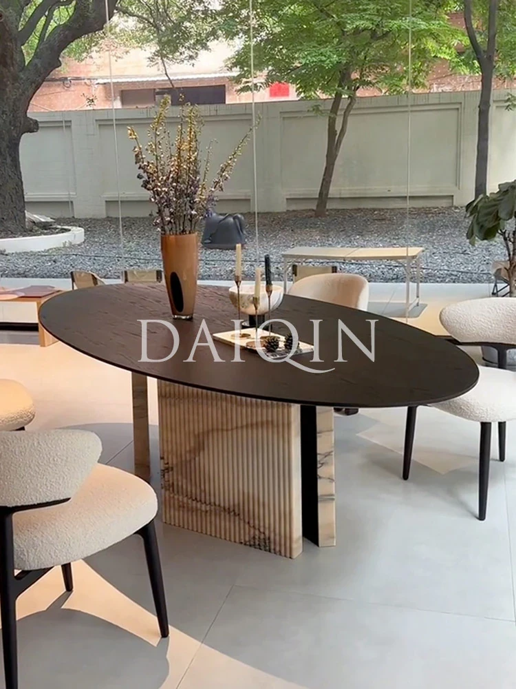 戎匠雪山ランシャ石製イタリアンミニマリズム高級大理石軽奢食卓 - 高級ヴィラにぴったりの水滴型ダイニングテーブル!洗練されたデザインで、特別なひとときを演出します。