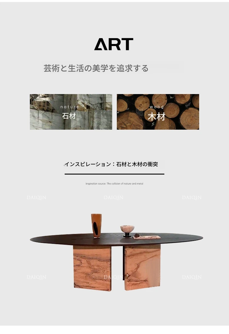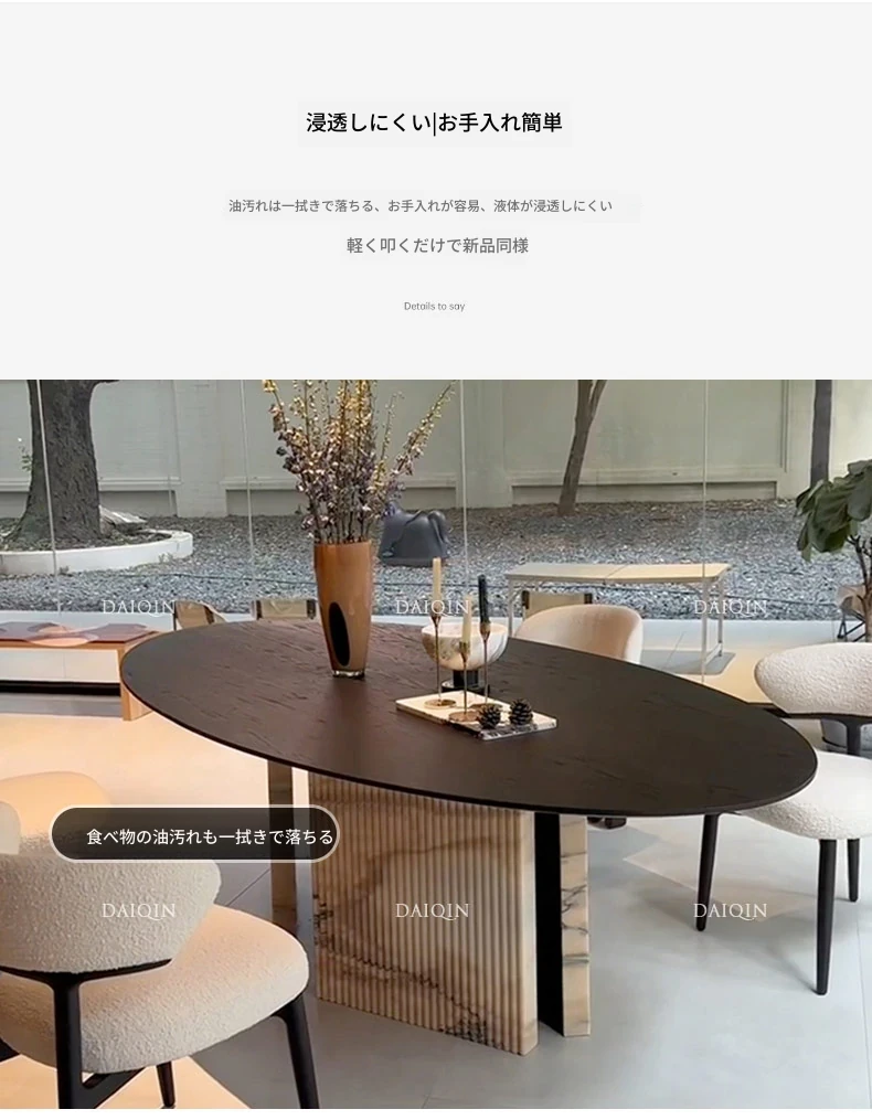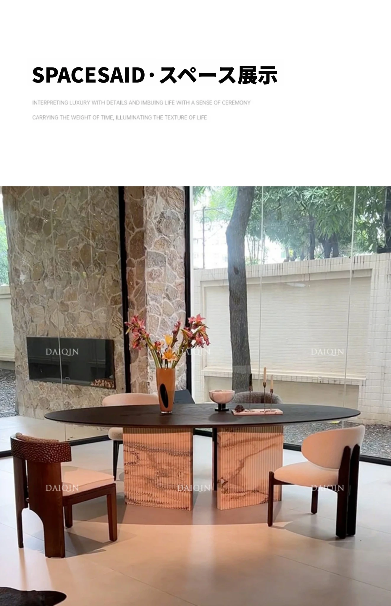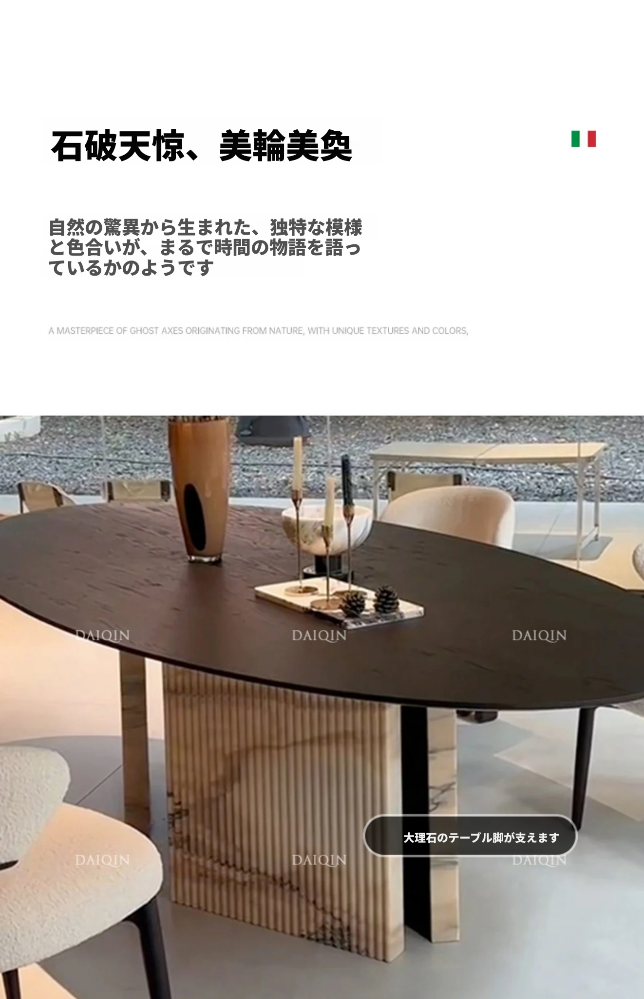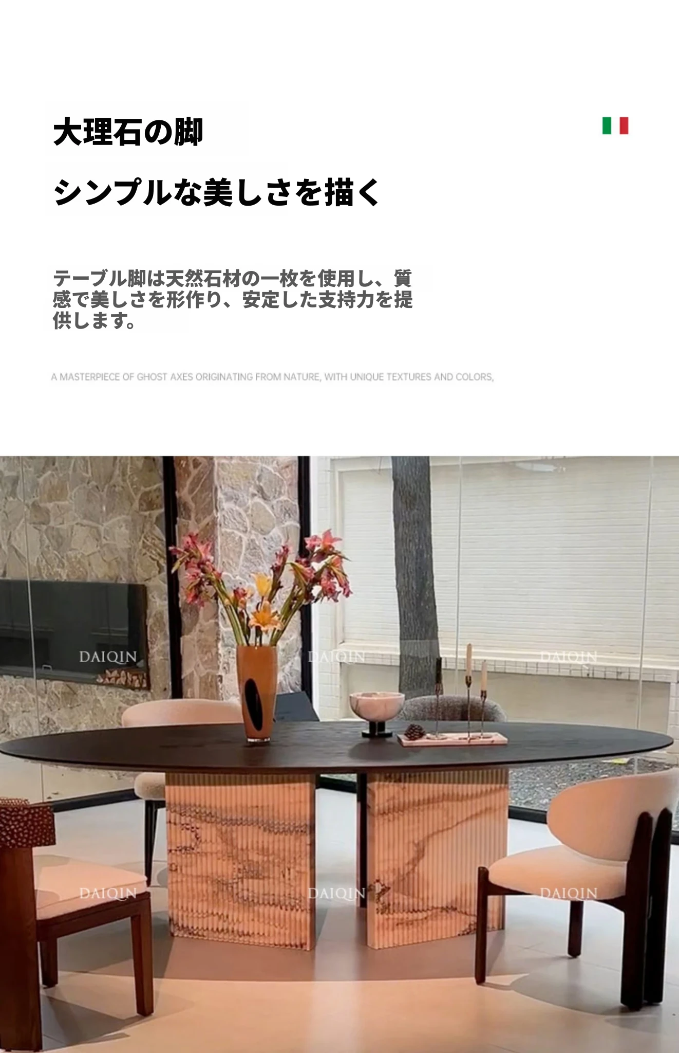 DQダイチン輸入純天然マーブルフレンチビンテージデザインの高級感あふれる無垢材ラグジュアリーストーンダイニングテーブル
