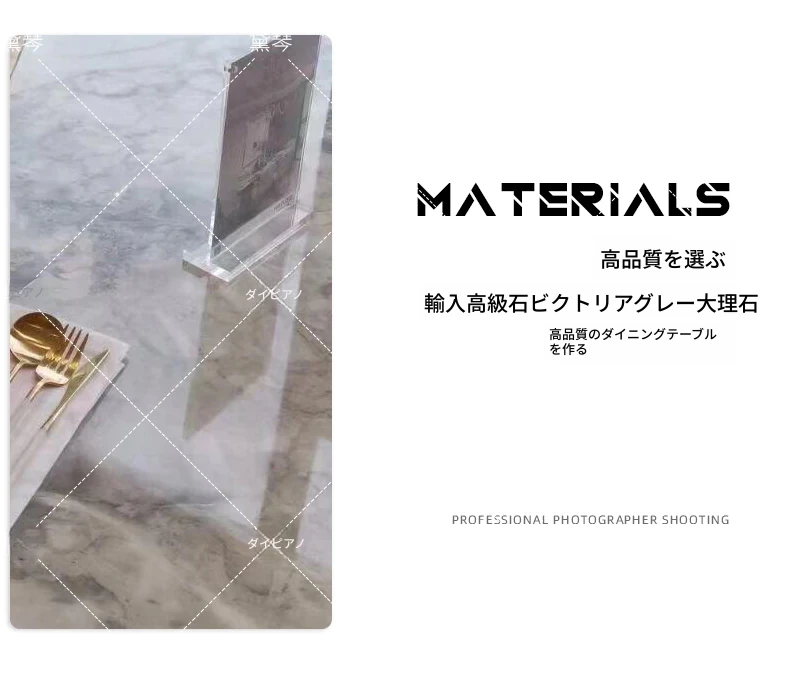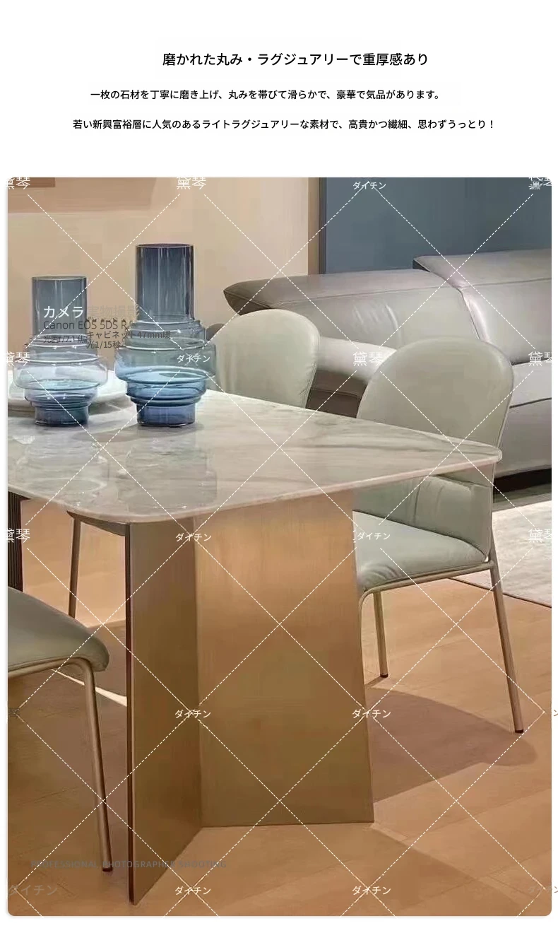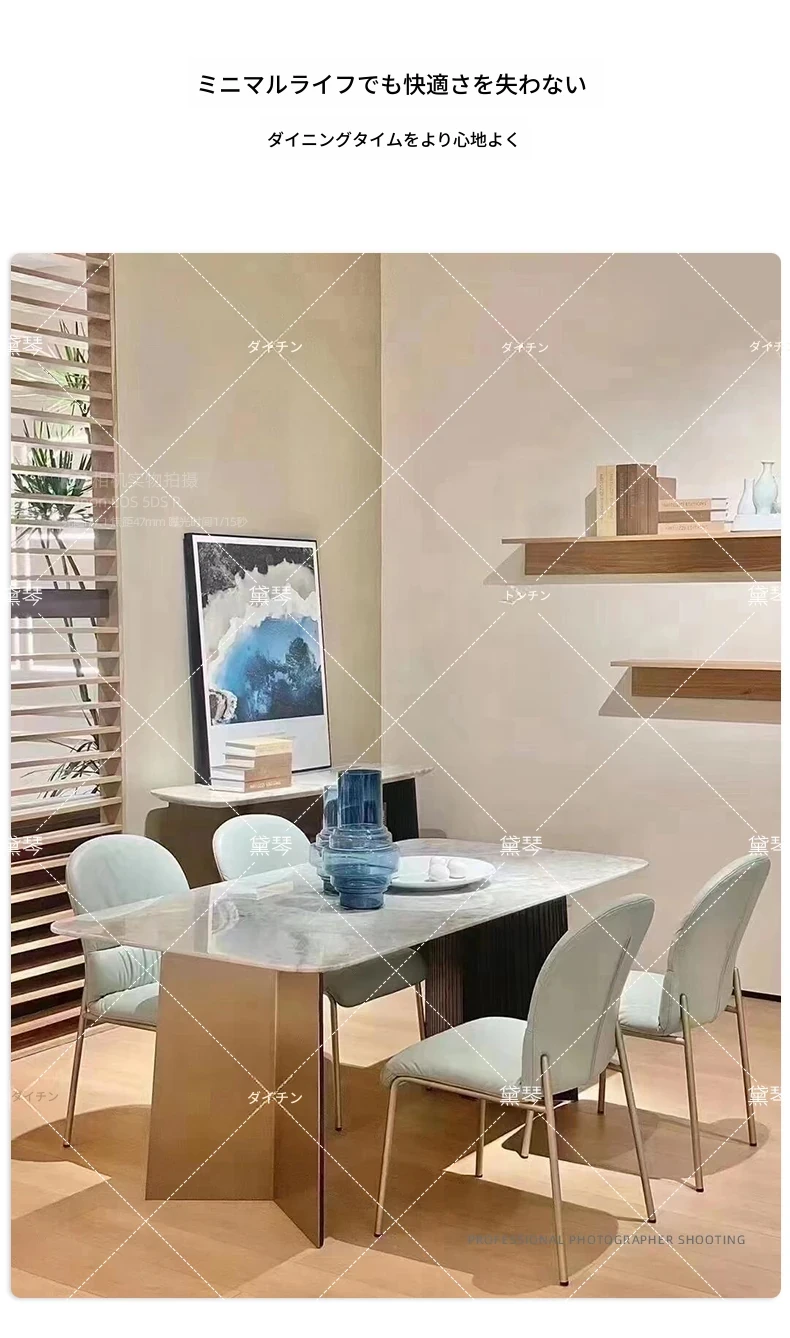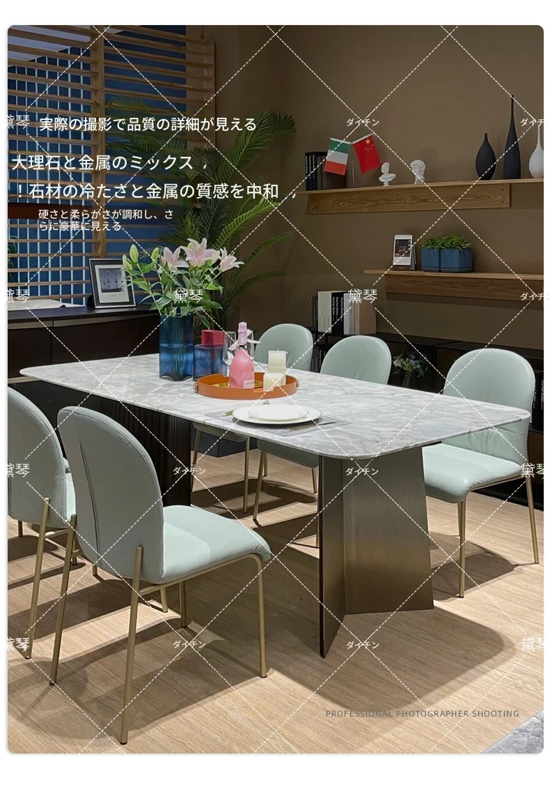 モダンでシンプルな大理石ダイニングテーブルセット!ステンレス製の長方形テーブルは、さまざまなサイズの部屋にぴったり。高級感あふれる岩板のデザインで、食卓を華やかに演出します。