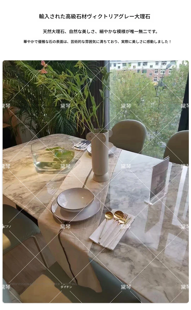 DQダイキン・ヴィクトリアグレー天然大理石イタリアンミニマルラグジュアリー長方形高級ダイニングテーブル - おしゃれな大空間にぴったりな洗練されたデザイン!