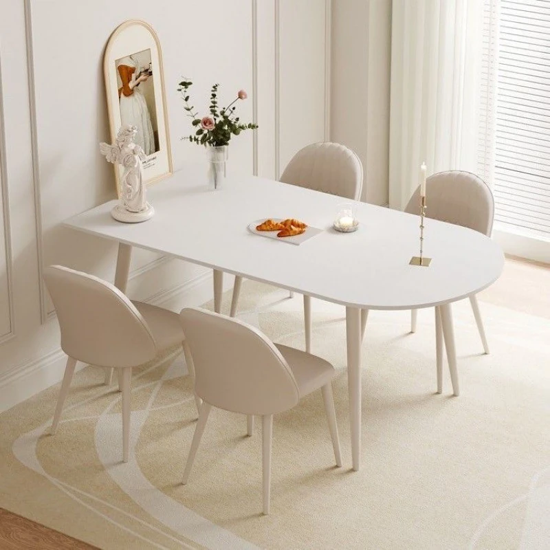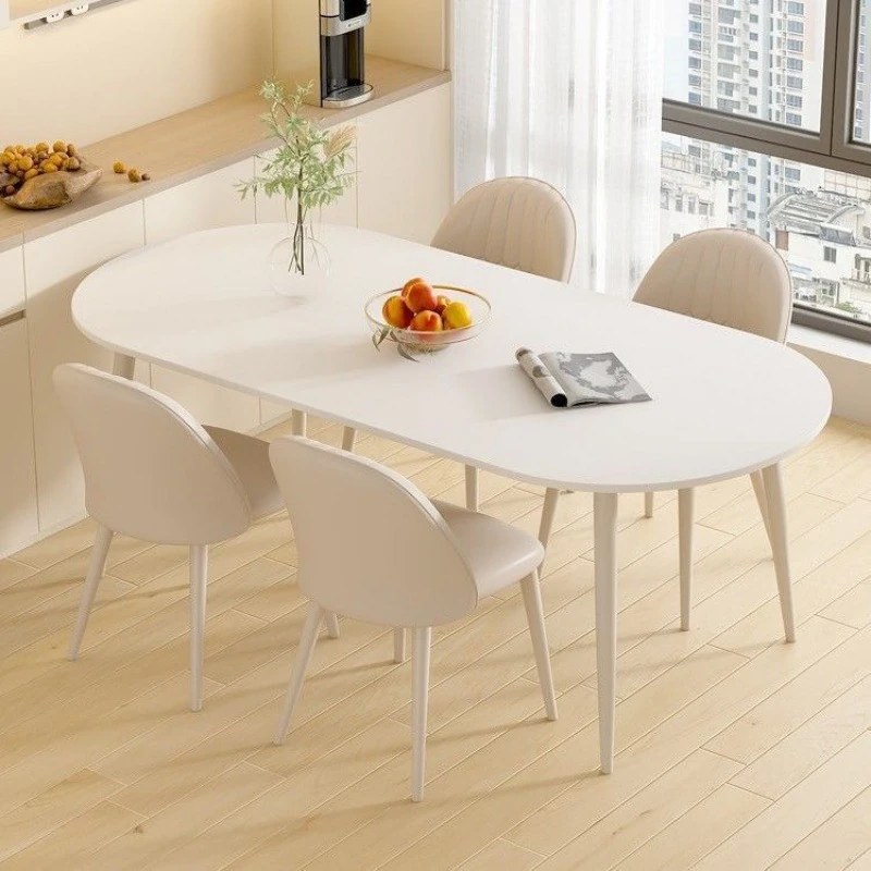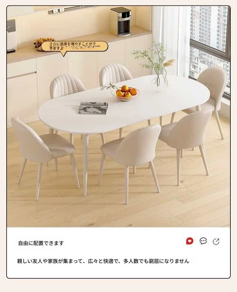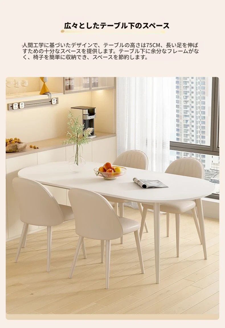 #“ダブルヘッド円形クリーム風純白岩板ダイニングテーブル、長さ140*幅82*高さ75