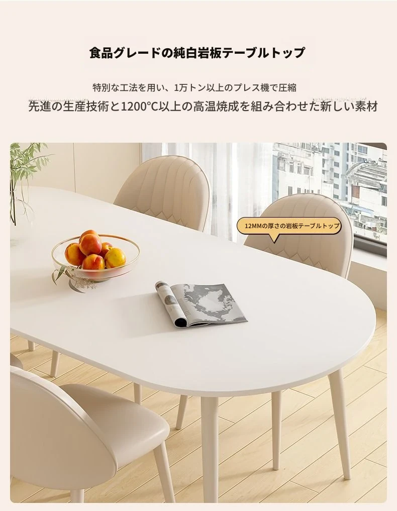 #“シングルヘッド円形クリーム風純白岩板ダイニングテーブル、長さ140*幅82*高さ75