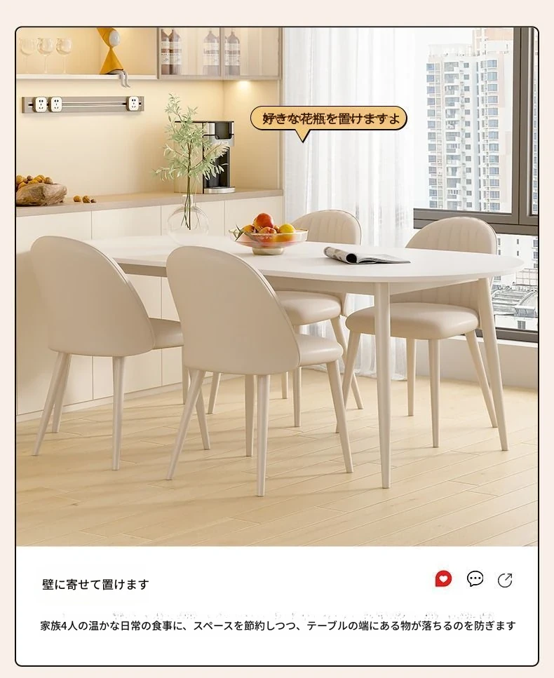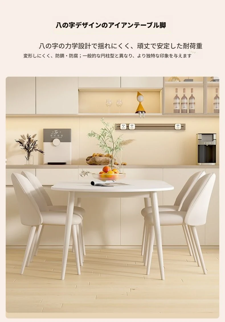 #“シングルヘッド円形クリーム風純白岩板ダイニングテーブル、長さ120*幅62*高さ75