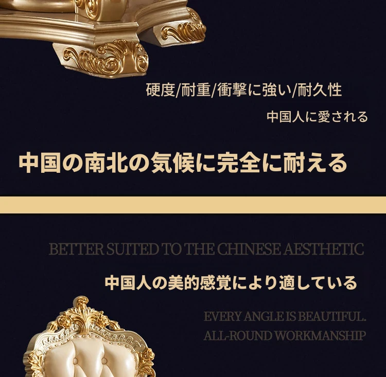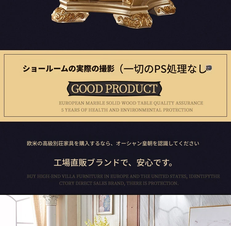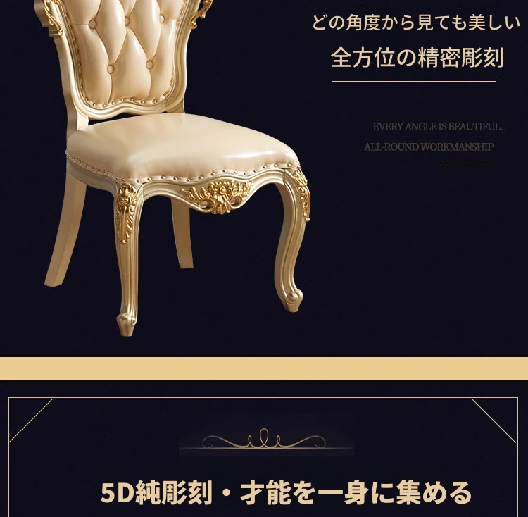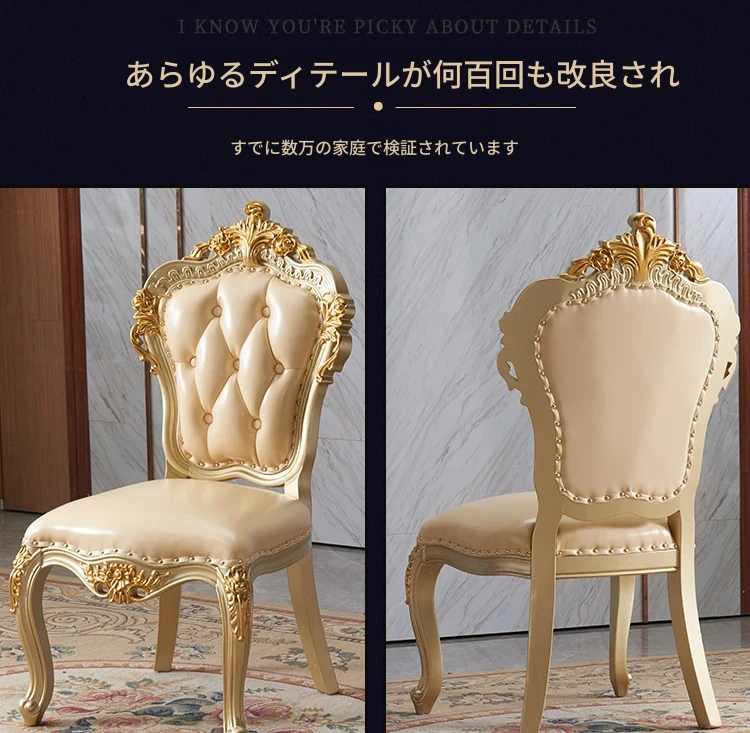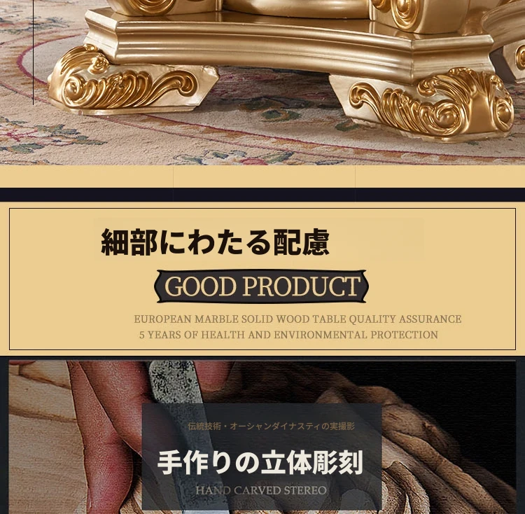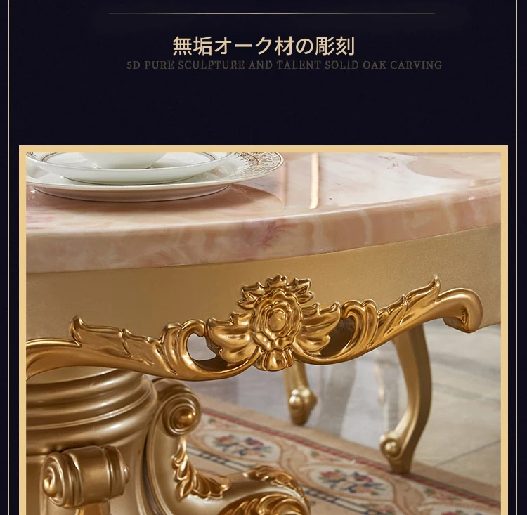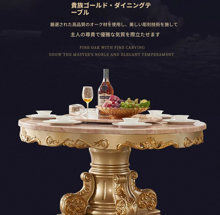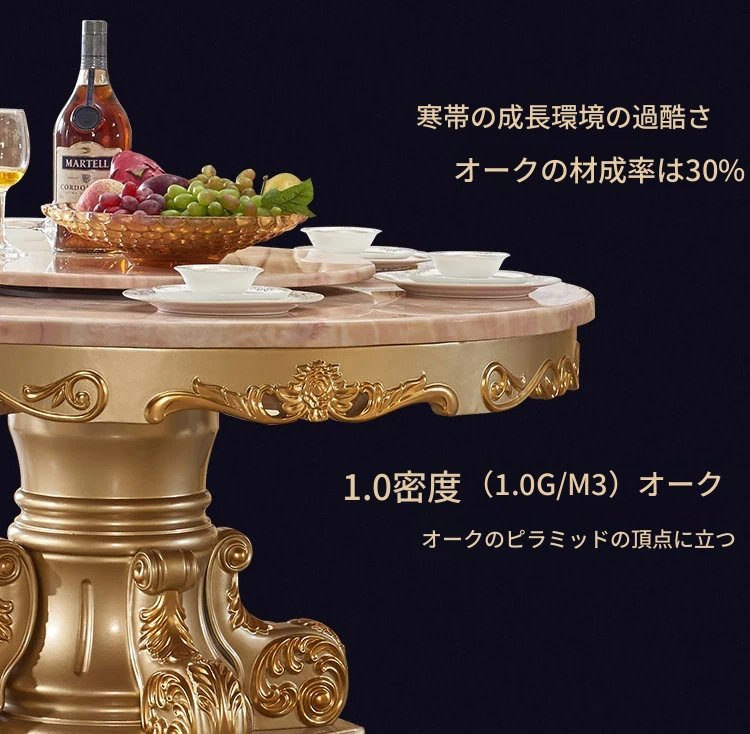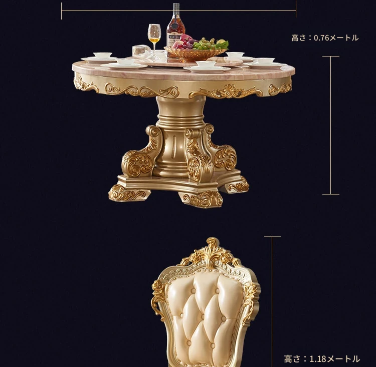 ヨーロッパ風大理石ラウンドテーブル、純木製ダイニングテーブル&チェアセット、回転台付き、6脚の椅子付き!ゴージャスな金色のレストランや別荘にぴったりの家具。高級感あふれる空間を演出します!