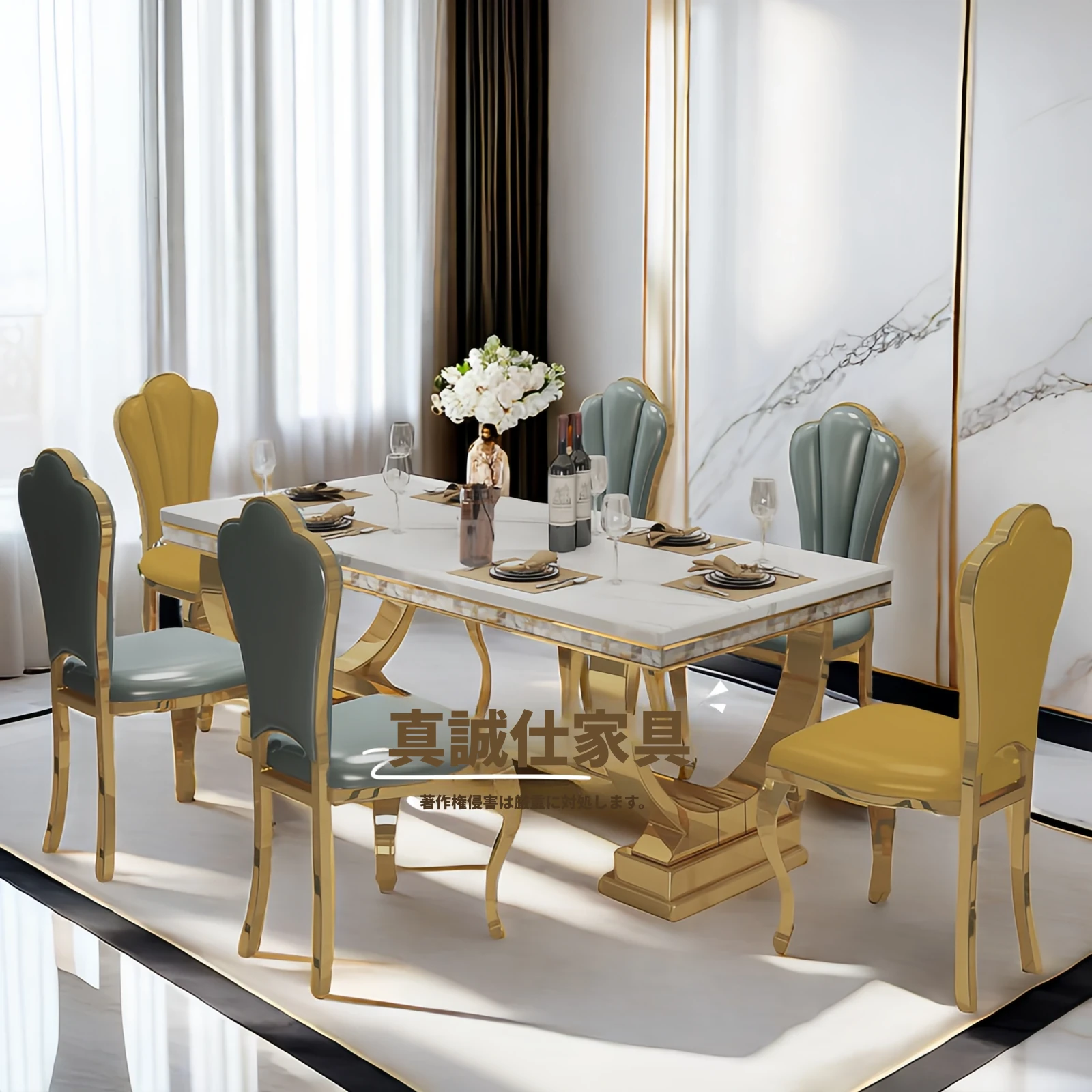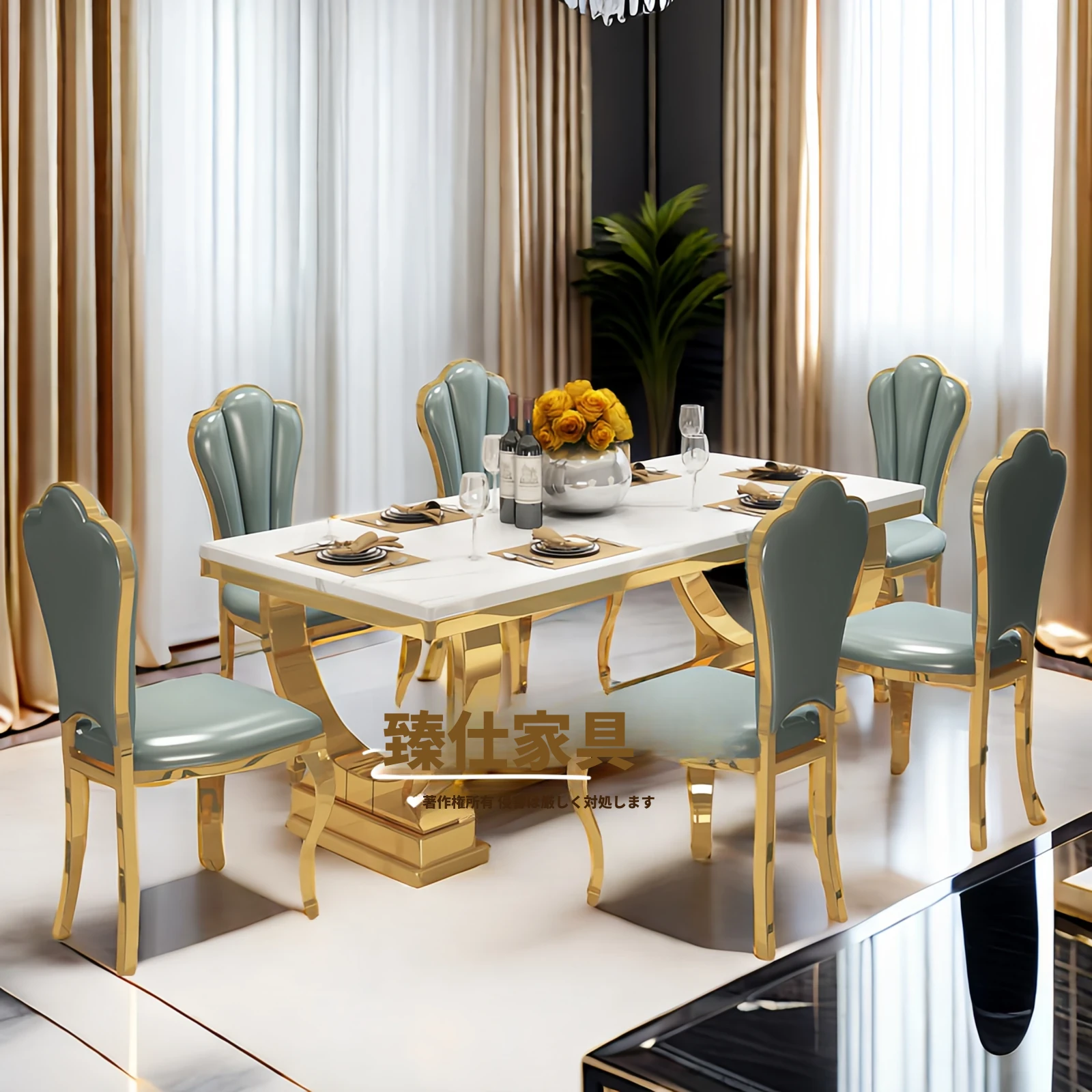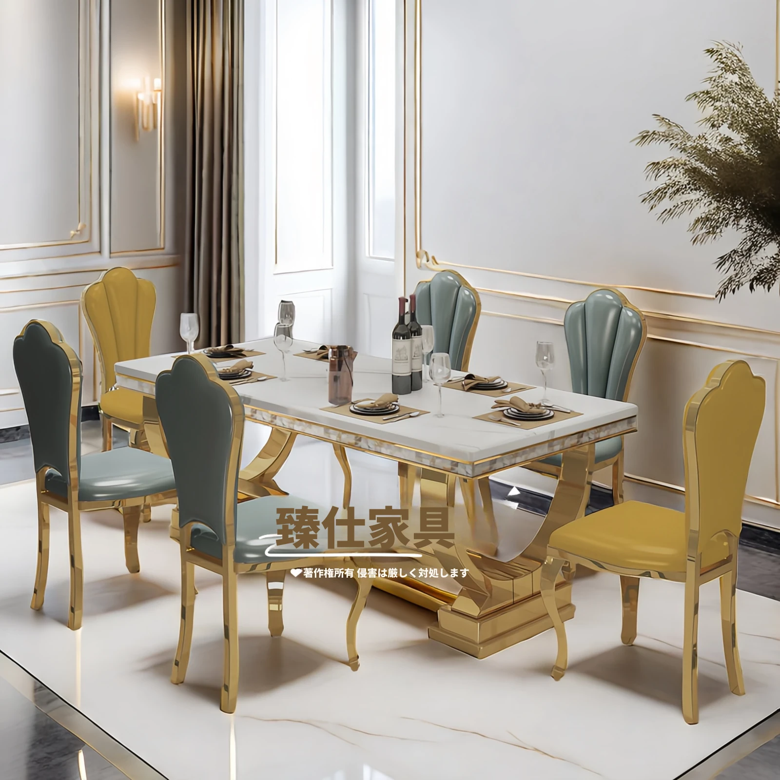 イタリアン・ラグジュアリー大理石ダイニングテーブルセット|モダンシンプルな長方形の家用岩板テーブルで、食卓を格上げ!おしゃれで機能的なデザインで、毎日の食事を特別な時間に。