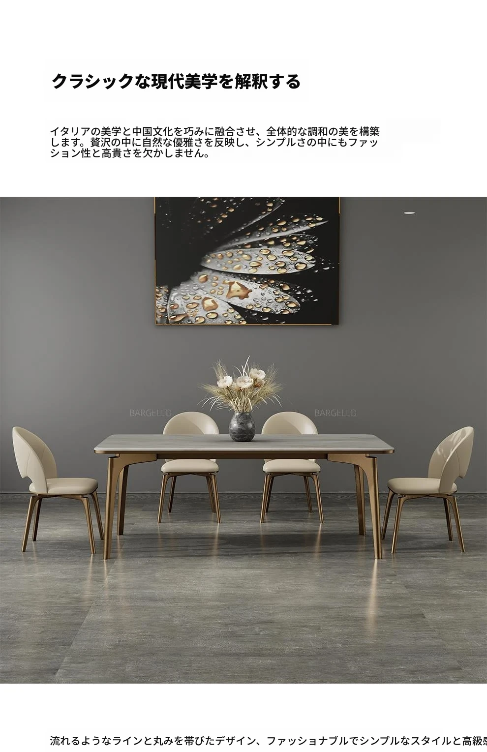 イタリアンラグジュアリーのデザイン全案、極簡潔な実木ダイニング家具!高級感あふれる長方形の大理石テーブルで、モダンな食卓を演出。あなたのダイニングを特別な空間に変えます。