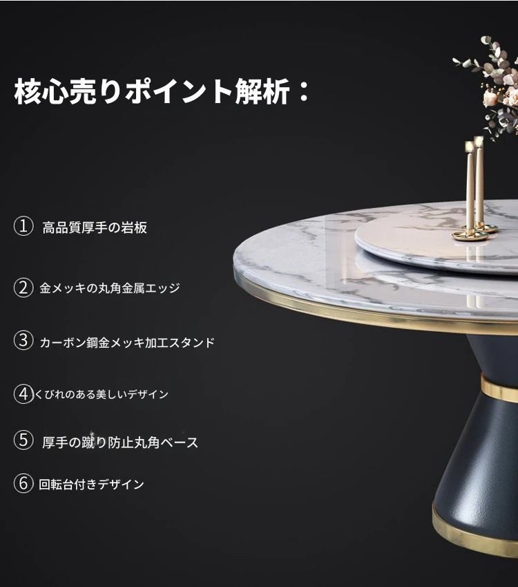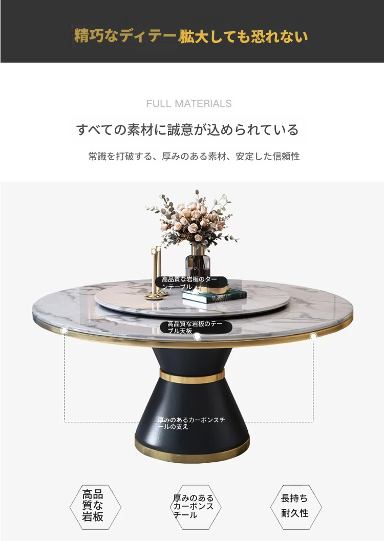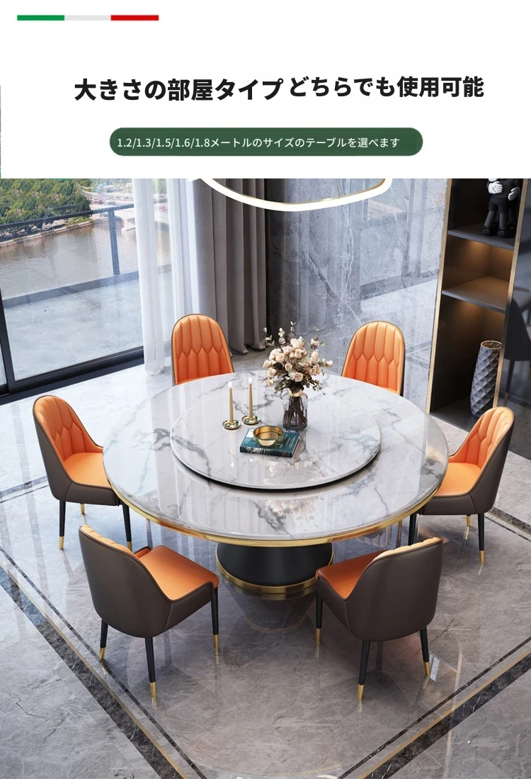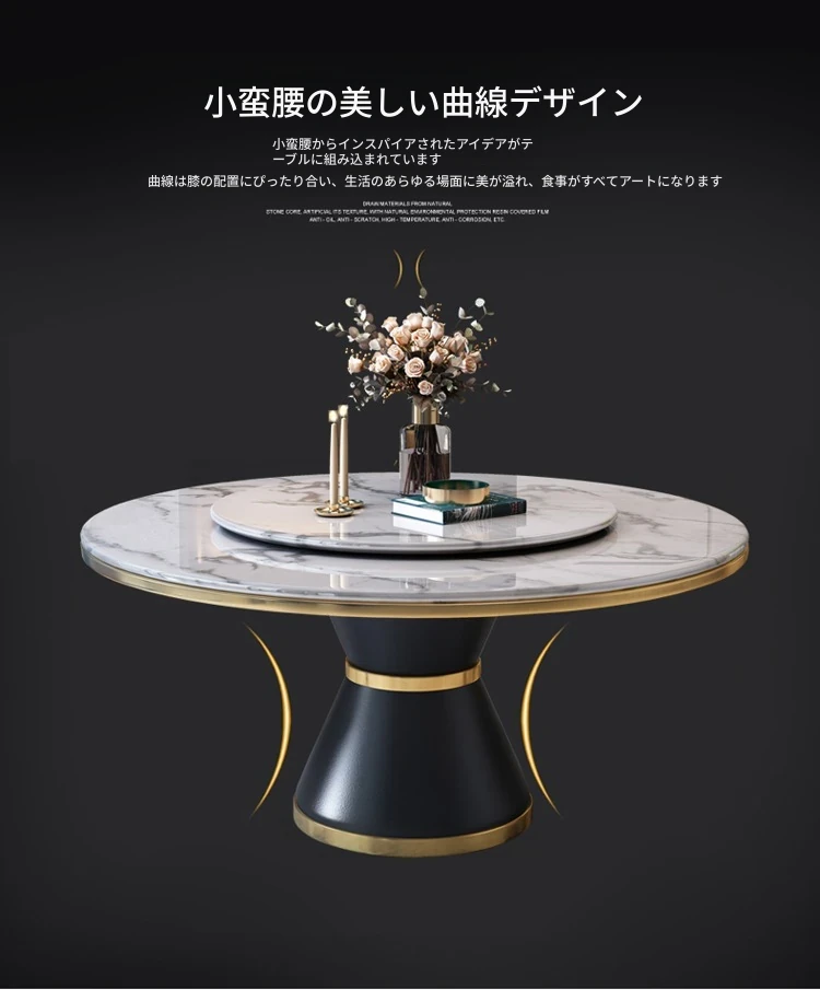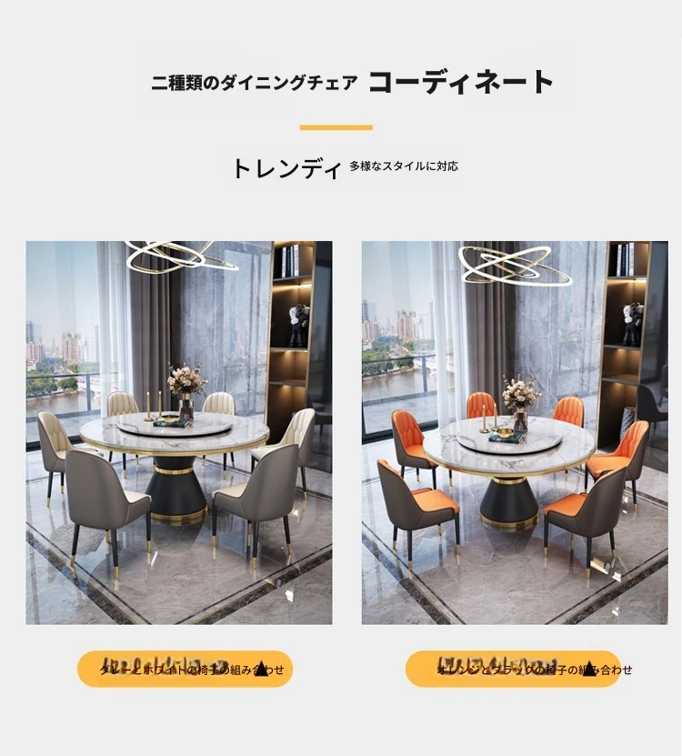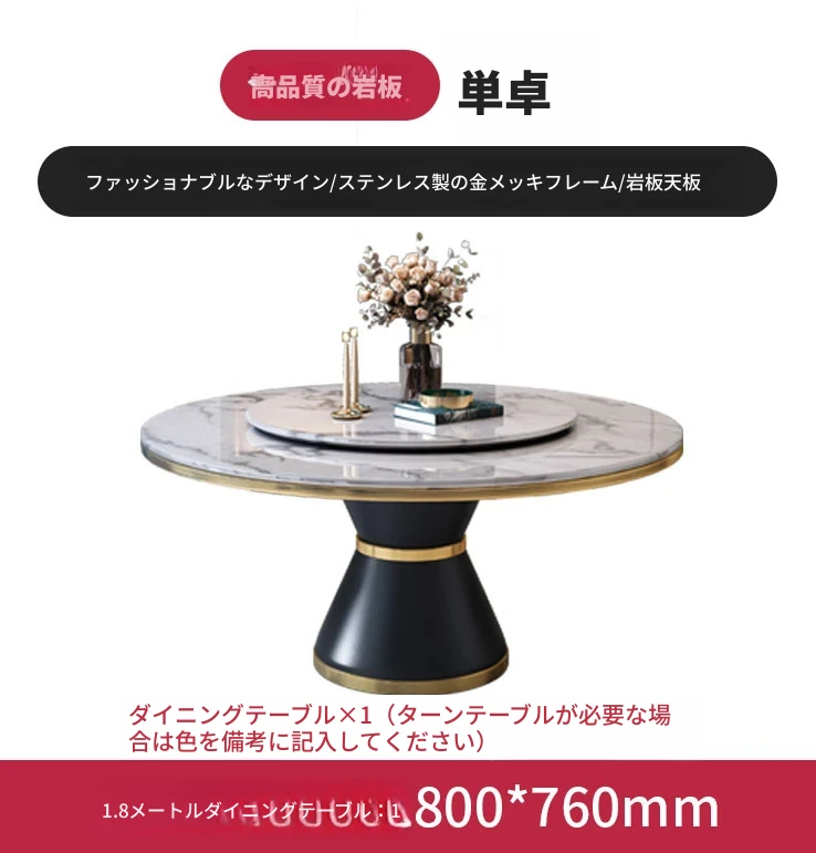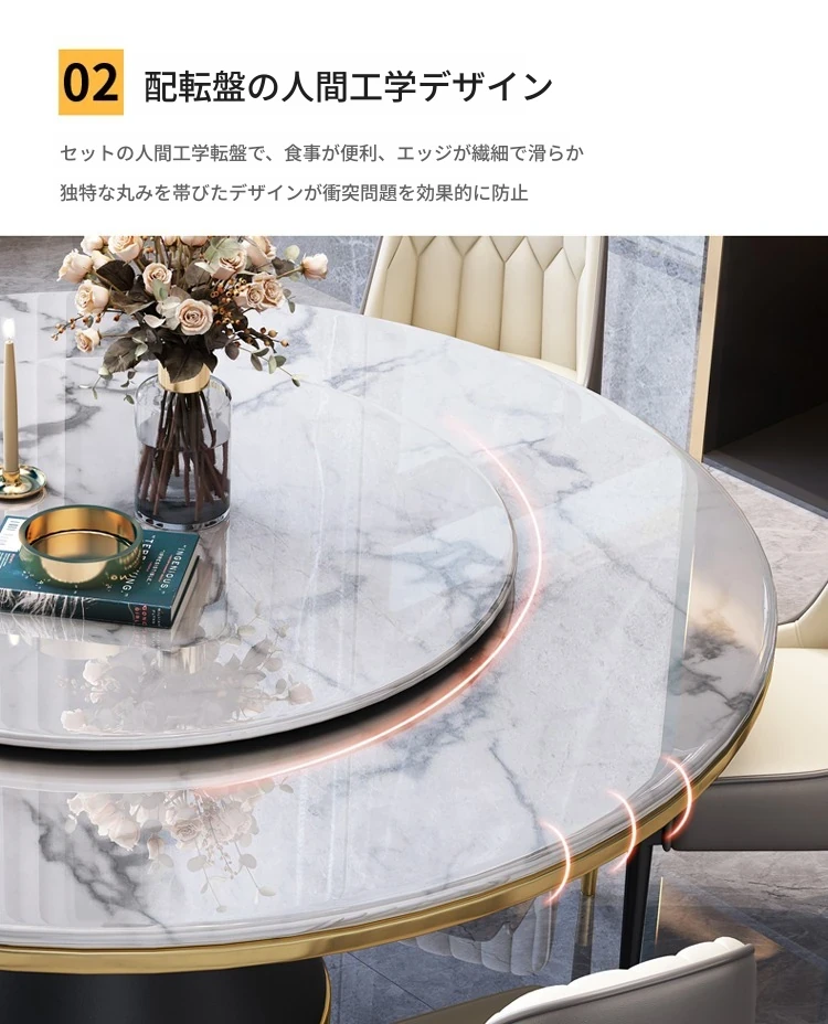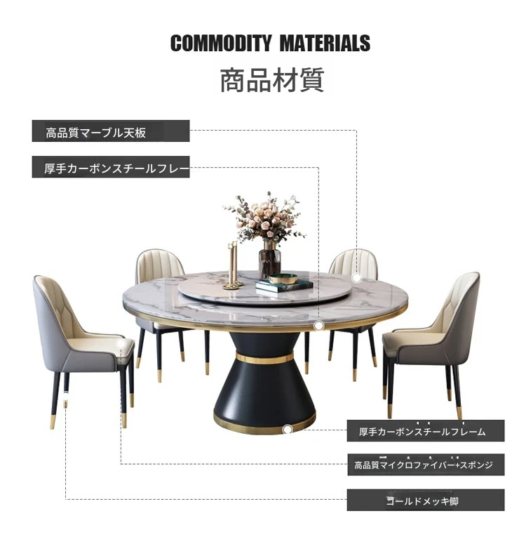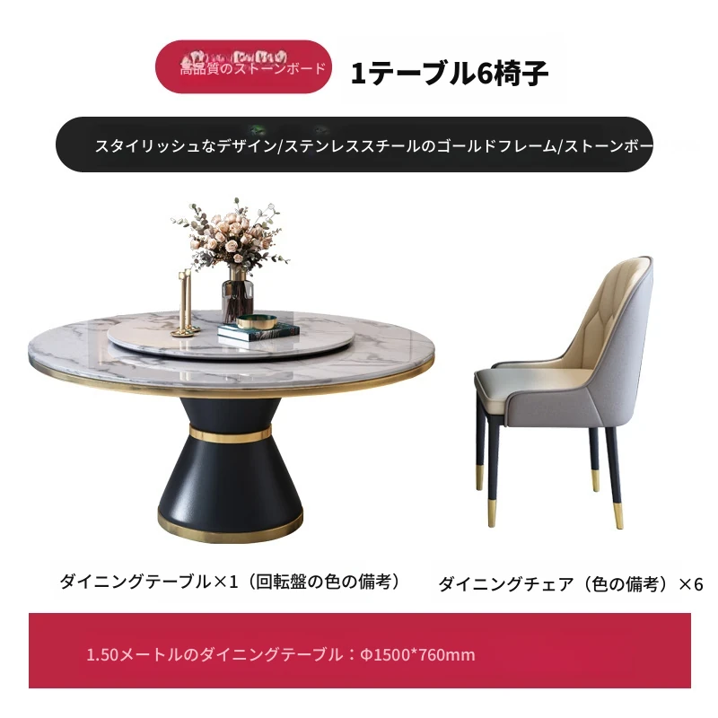1.5メートル円卓+6スペースチェア【金縁付き】 (注文すると回転台進呈)