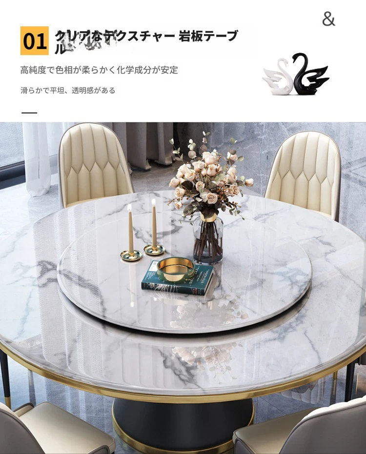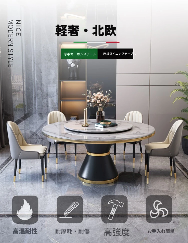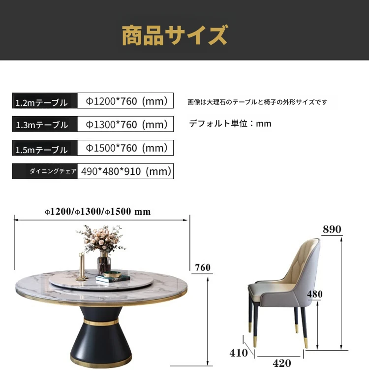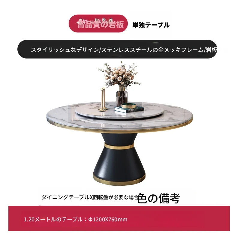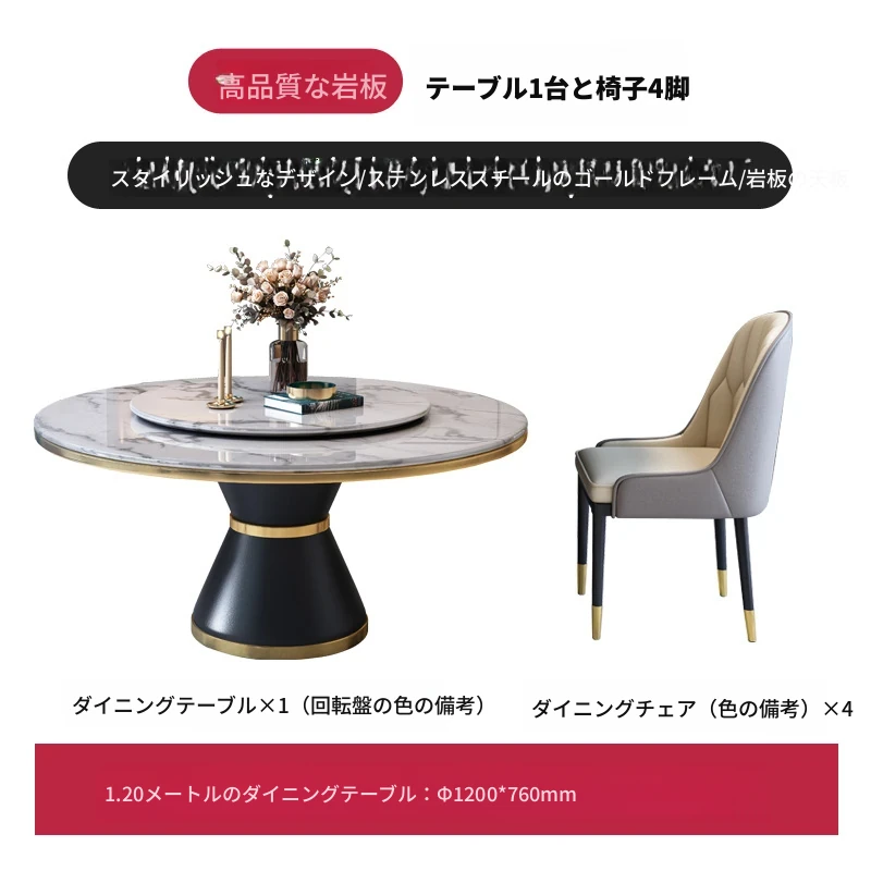 1.2メートル円卓+4スペースチェア【金縁付き】 (注文すると回転台進呈)