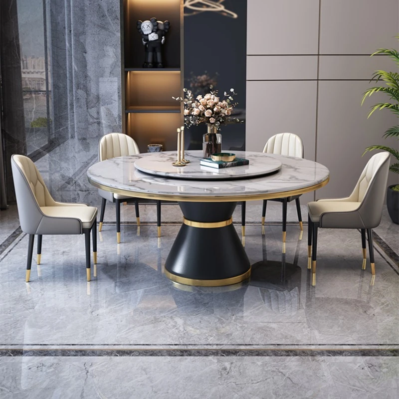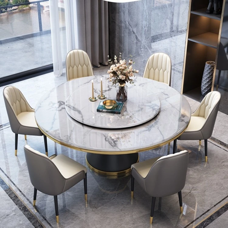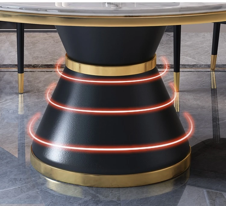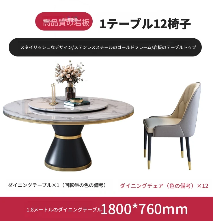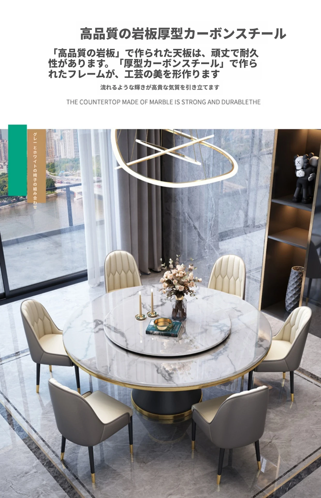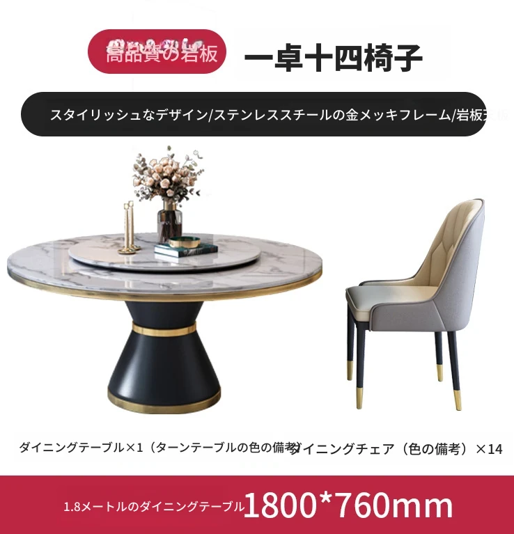 1.5メートル円卓+8スペースチェア【金縁付き】 (注文すると回転台進呈)