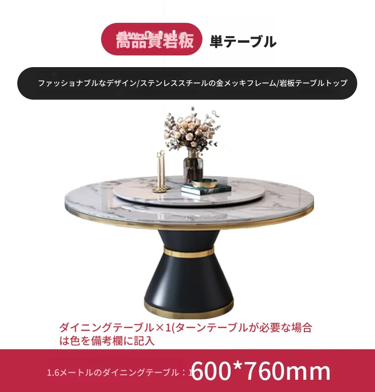 1.6メートル円卓+6スペースチェア【金縁付き】 (注文すると回転台進呈)