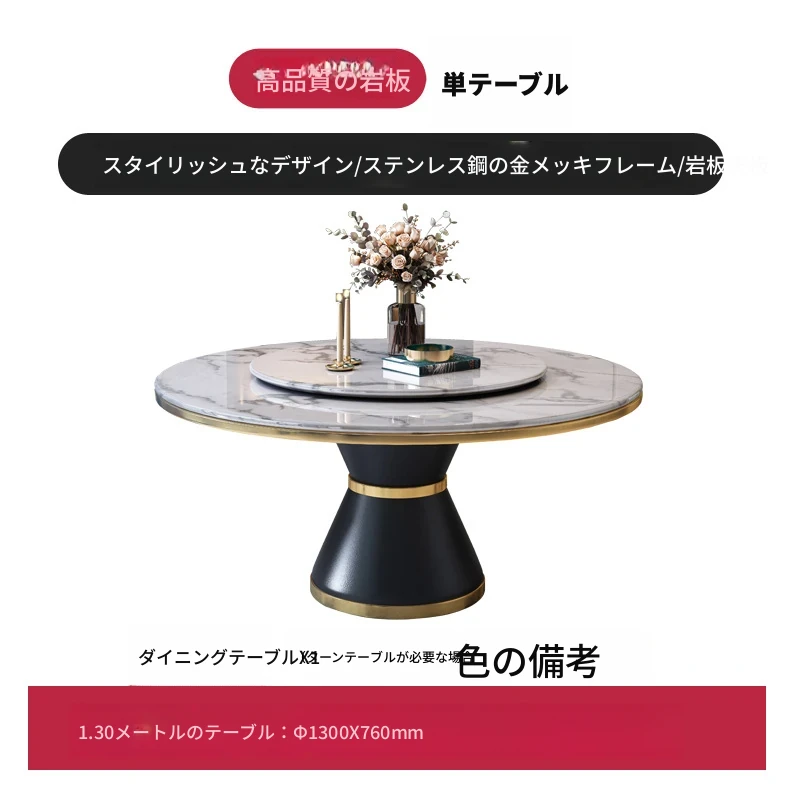 1.3メートル円卓+6スペースチェア【金縁付き】 (注文すると回転台進呈)