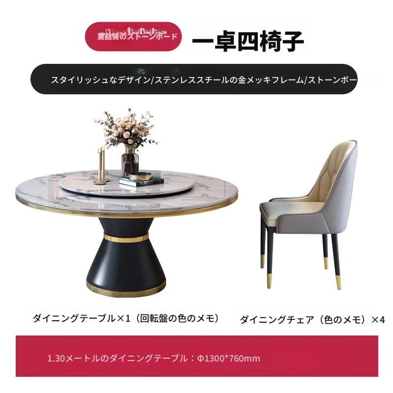 1.3メートル円卓+4スペースチェア【金縁付き】 (注文すると回転台進呈)