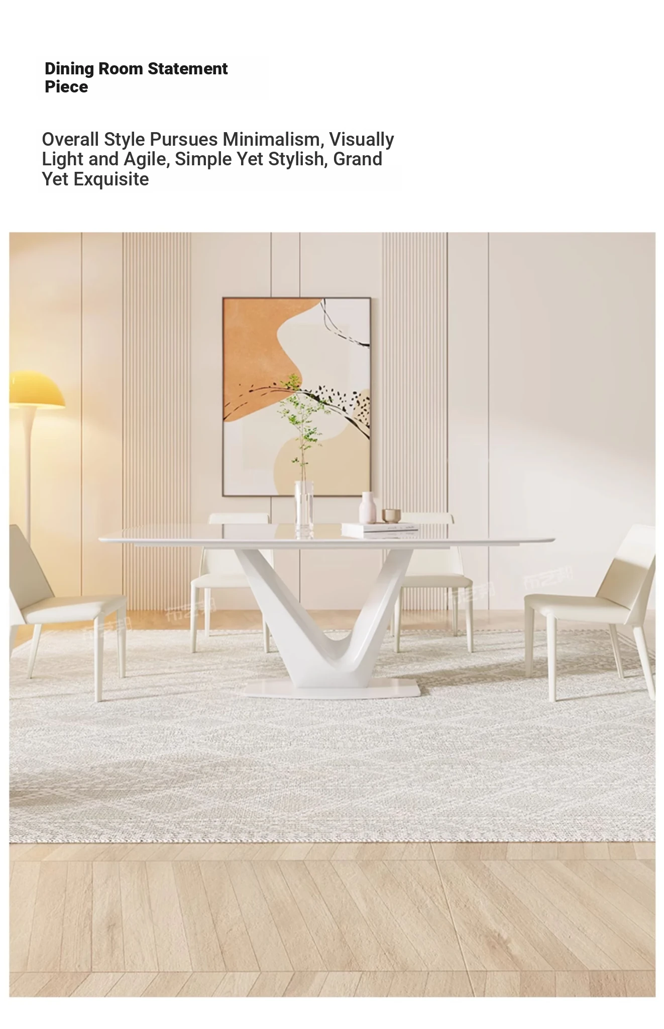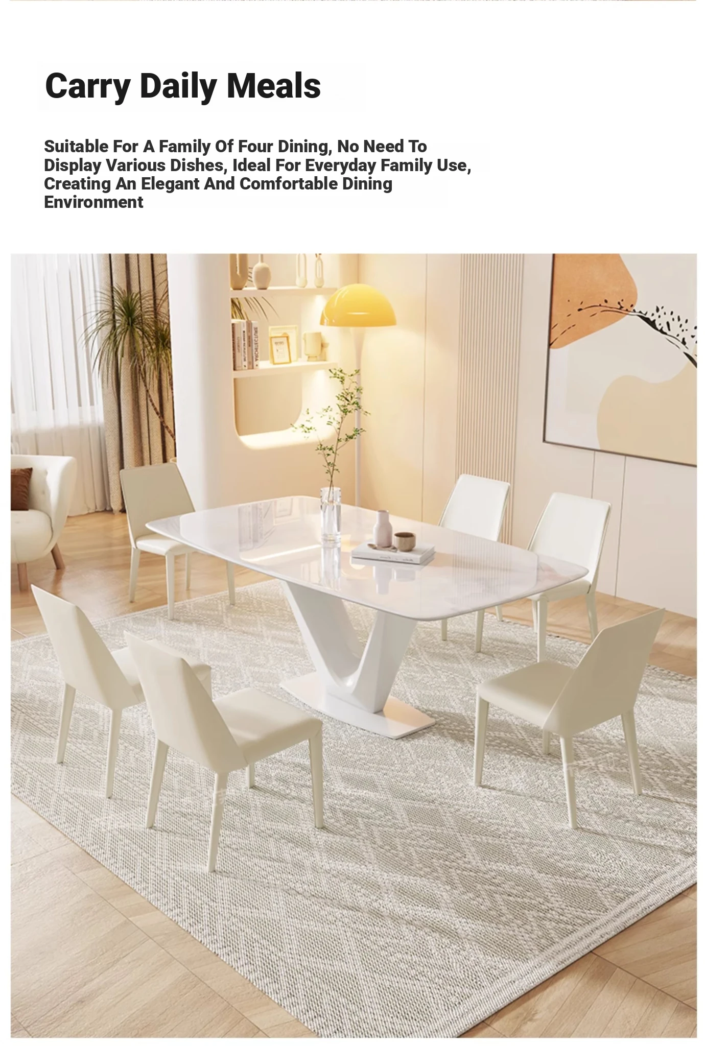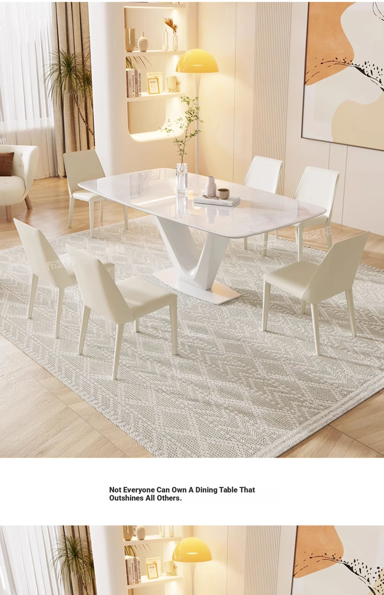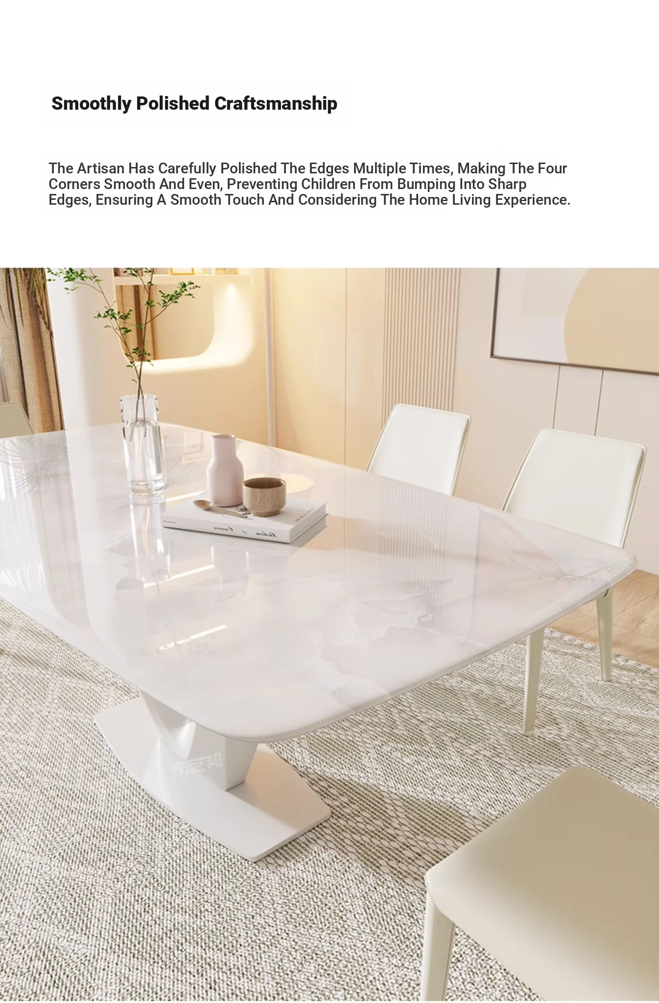 Elegant Minimalist Cream Marble Dining Table - Luxurious Modern Rectangular Design for Small Spaces, Inspired by Bulgari Style