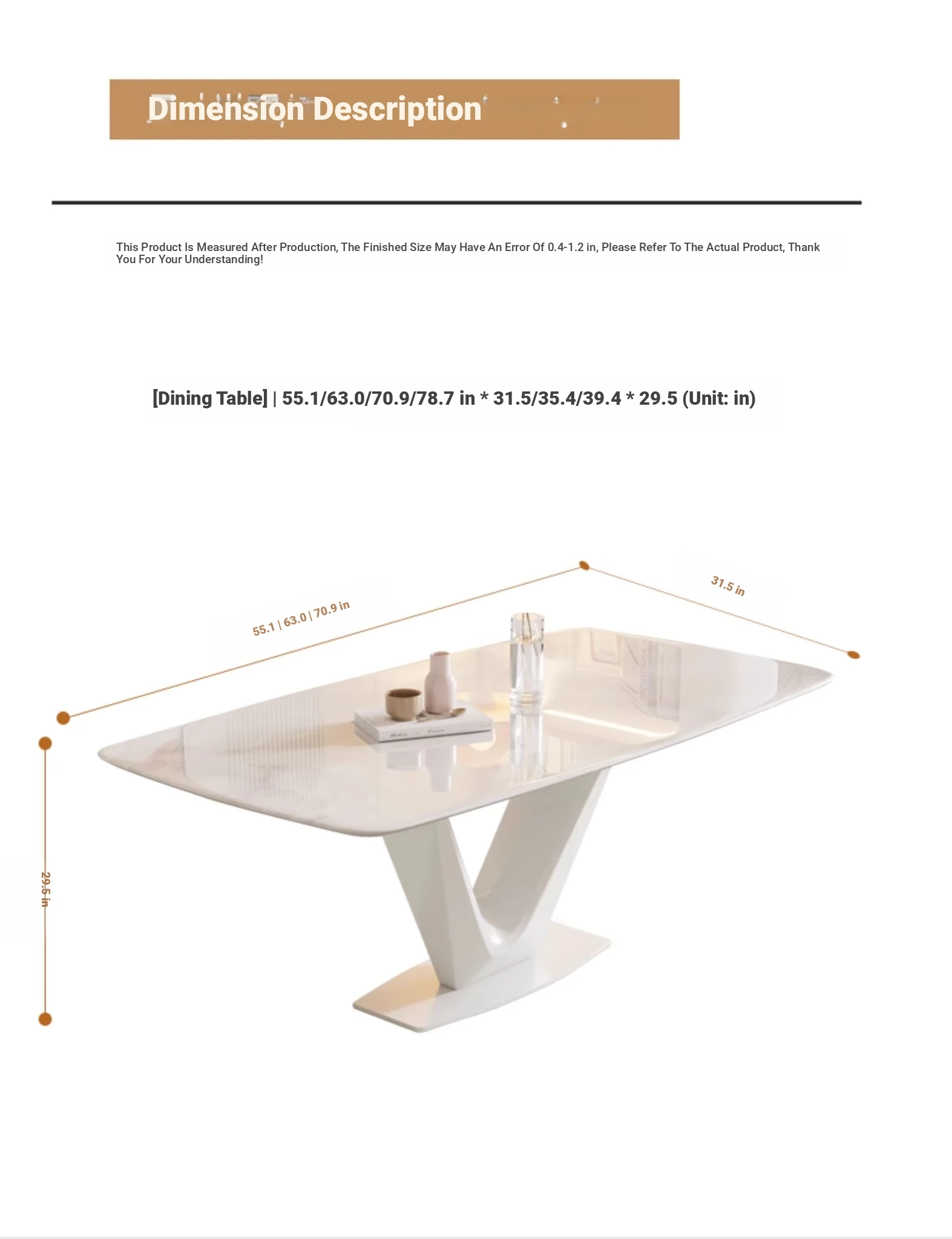 [Luxury Stone, Color Crystal Stone Marble] 62.99in Single Dining Table