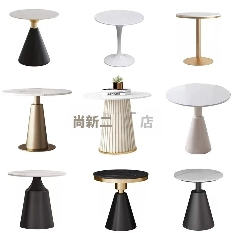 大理石調の軽奢華でシンプルな小型ラウンドテーブル - バルコニーやリラックスした接客に最適なインスタ風カフェテーブル&チェアセット!おしゃれな空間を演出します。