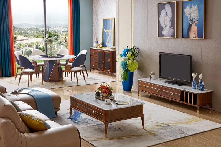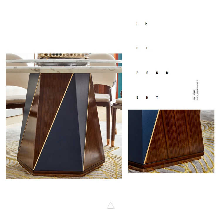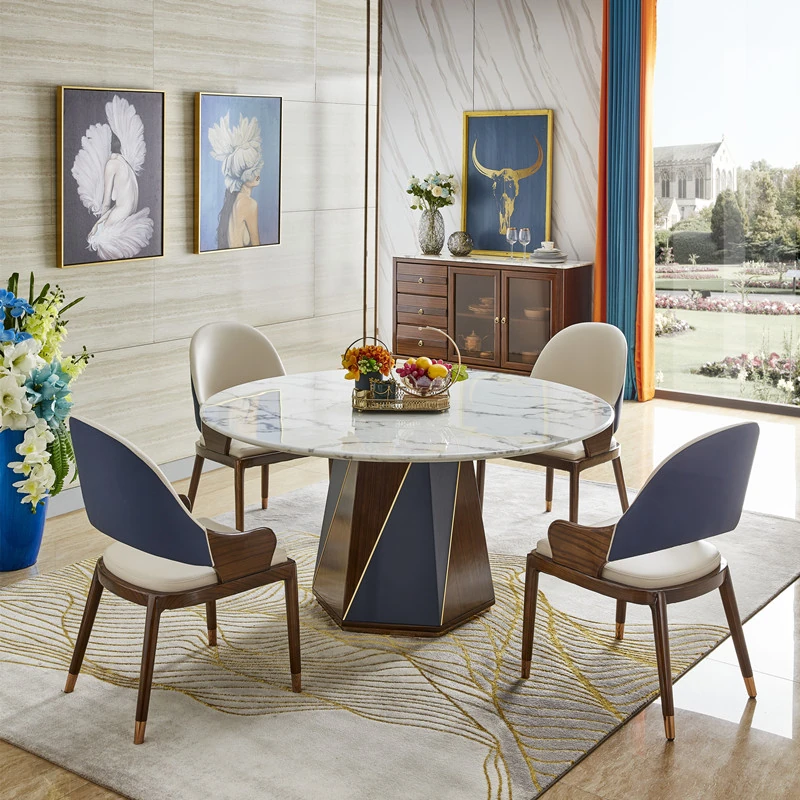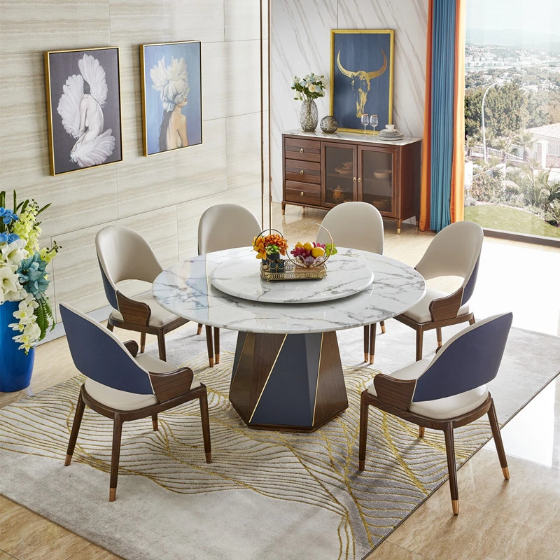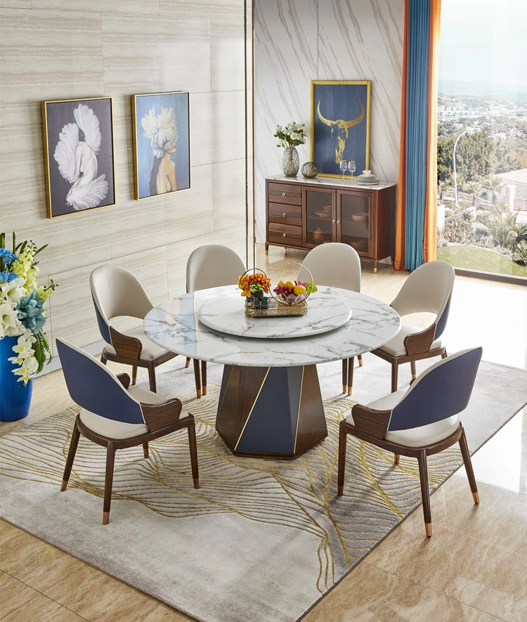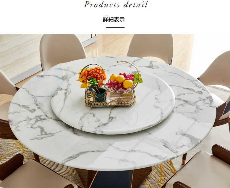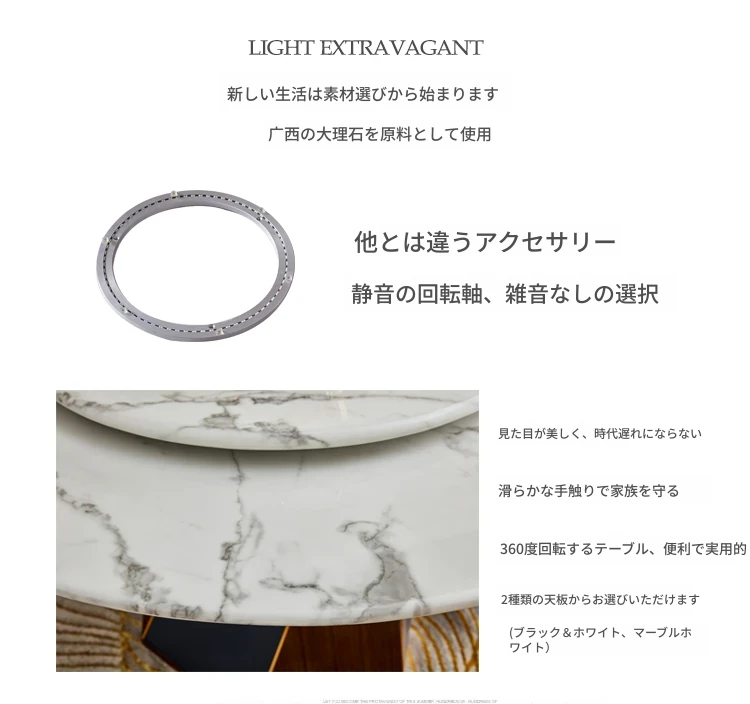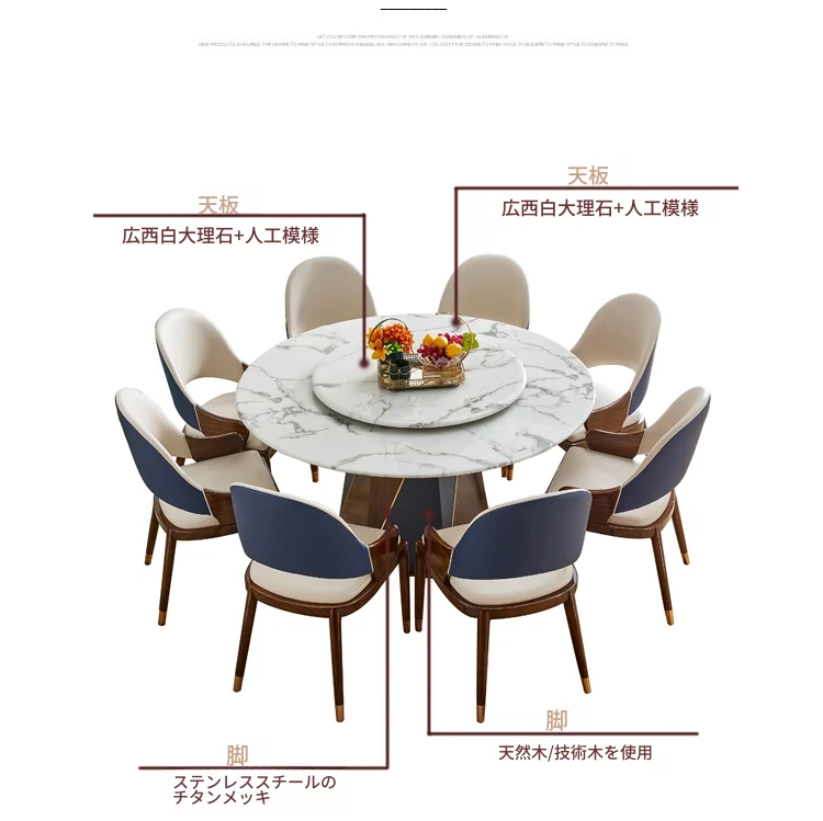 現代的軽奢スタイル!阅恒大マーブル円形テーブル、回転盤付き。超細繊維レザー&ウッド調ブラックの高級感溢れるダイニングセット。別荘やご家庭に最適なアイテムです!