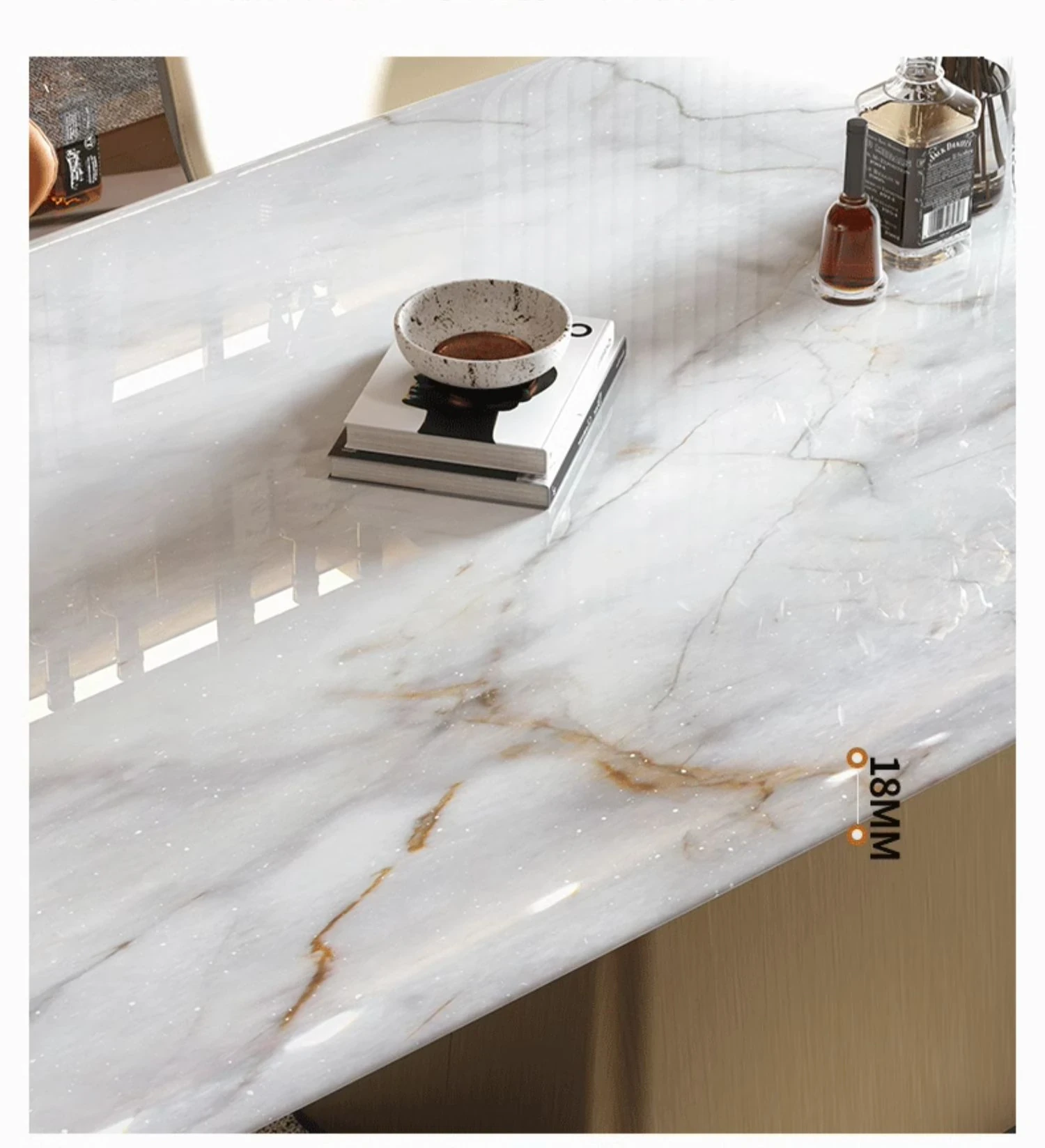 【ラグジュアリー石-天然カラージェムストーン+チタン金属ステンレス】1.6M単体ダイニングテーブル