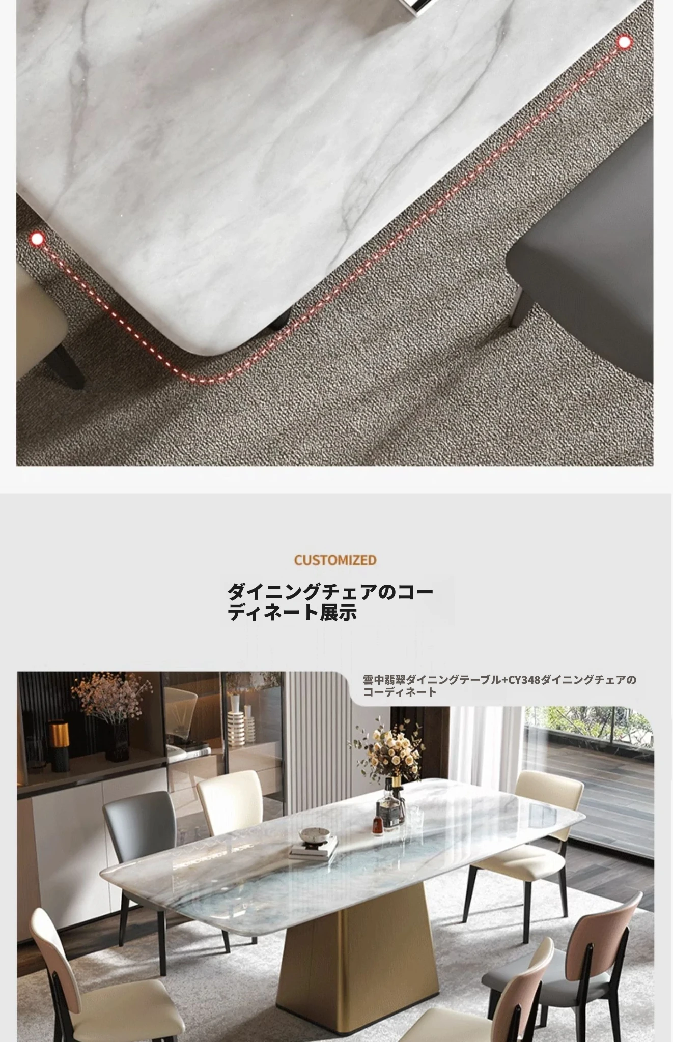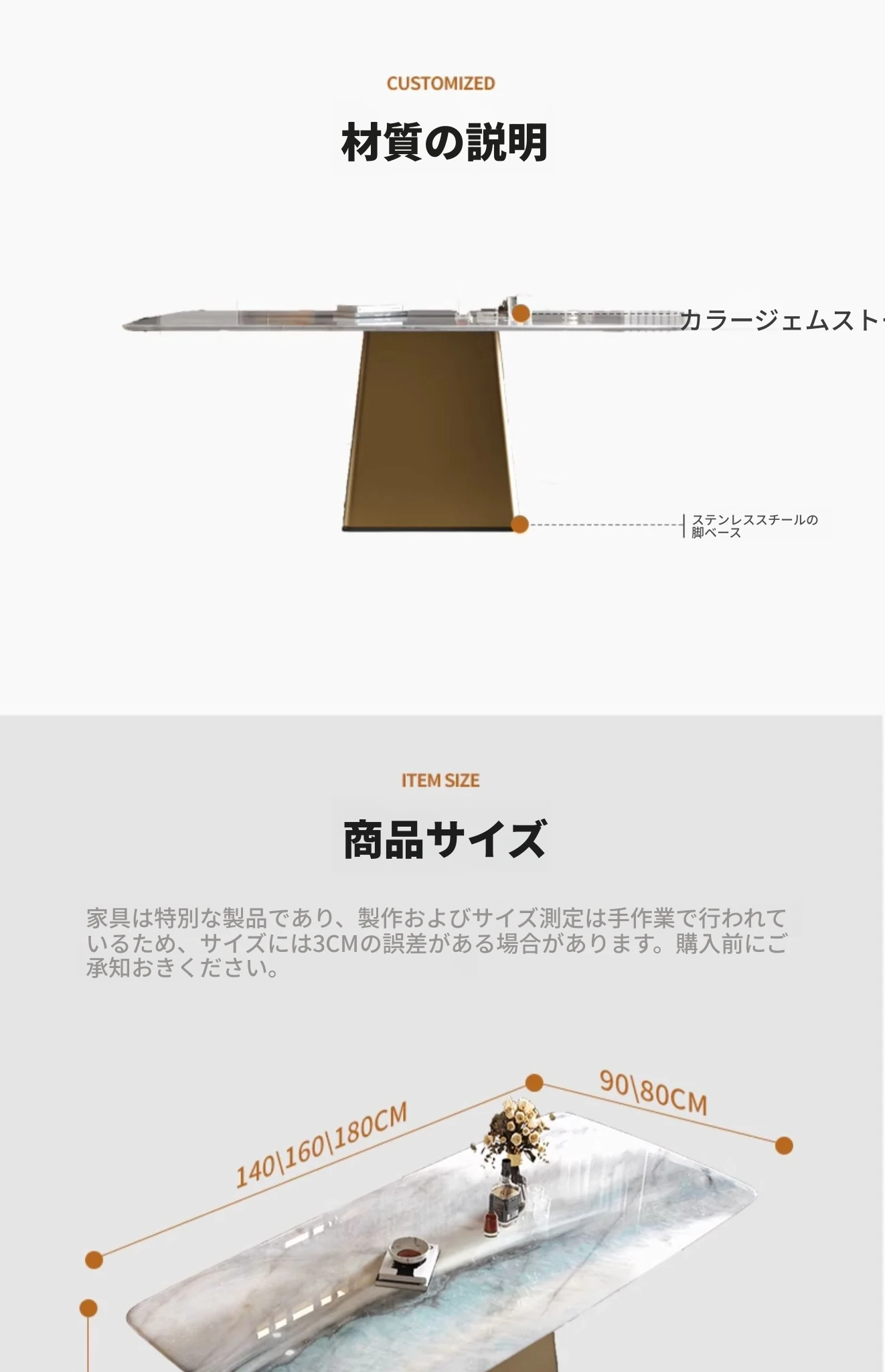 【ラグジュアリー石-天然カラージェムストーン+チタン金属ステンレス】1.4M単体ダイニングテーブル