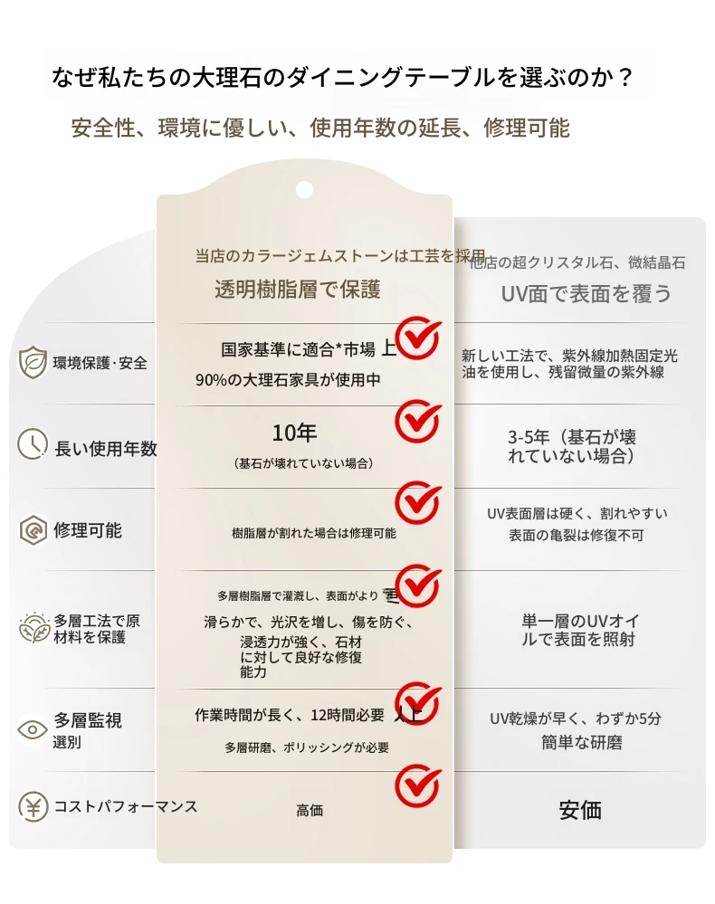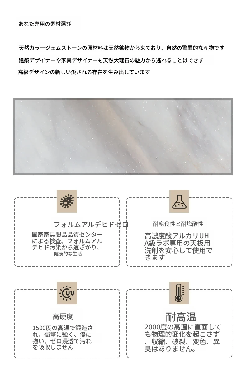 【ラグジュアリー石-天然カラージェムストーン】1.8*0.9m単品ダイニングテーブル