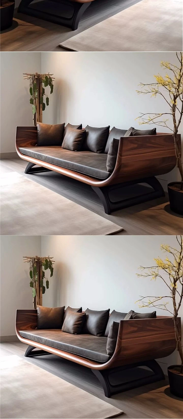 新中式デザインのブラックCウォールナットソファ、レザー仕上げの3人掛け、無垢材のミニマリストスタイル、イタリアン&北欧インスパイアのストレートソファで、洗練された空間を演出!