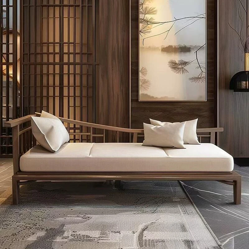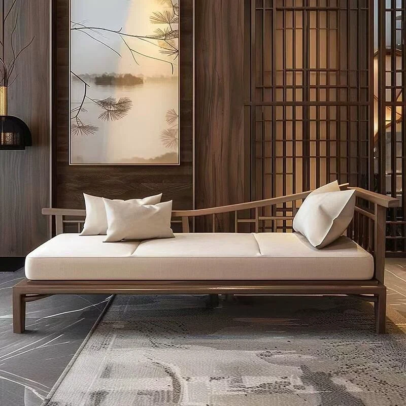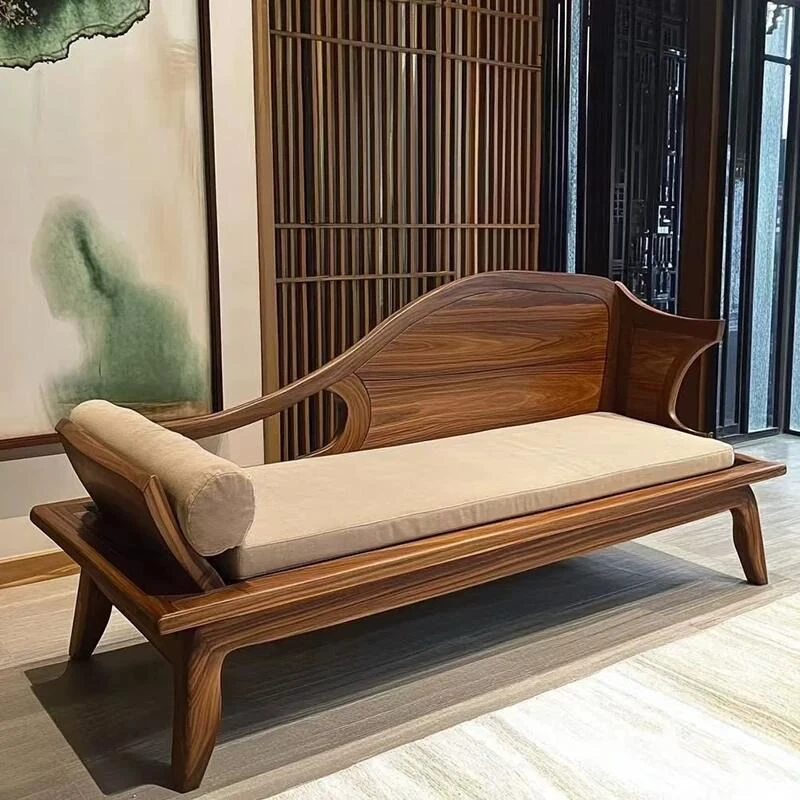 新中式デザインの北米産ブラックウォールナット製の貴妃椅子。禅の心を感じるホテルや民宿、別荘にぴったりの実木製ソファ・リクライニングチェア。美しいデザインで、心地よいひとときをお届けします。