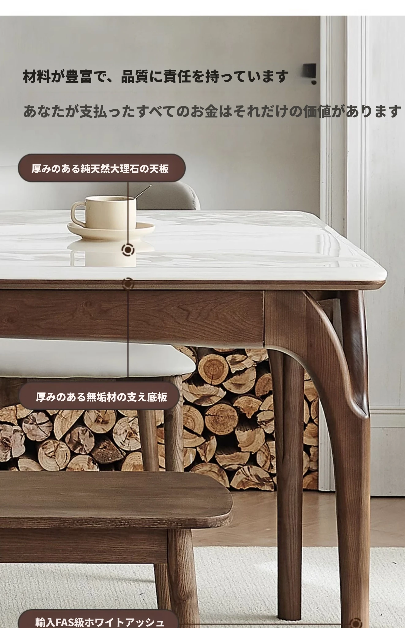 2.0メートル長のダイニングテーブル【本物の天然大理石天板】