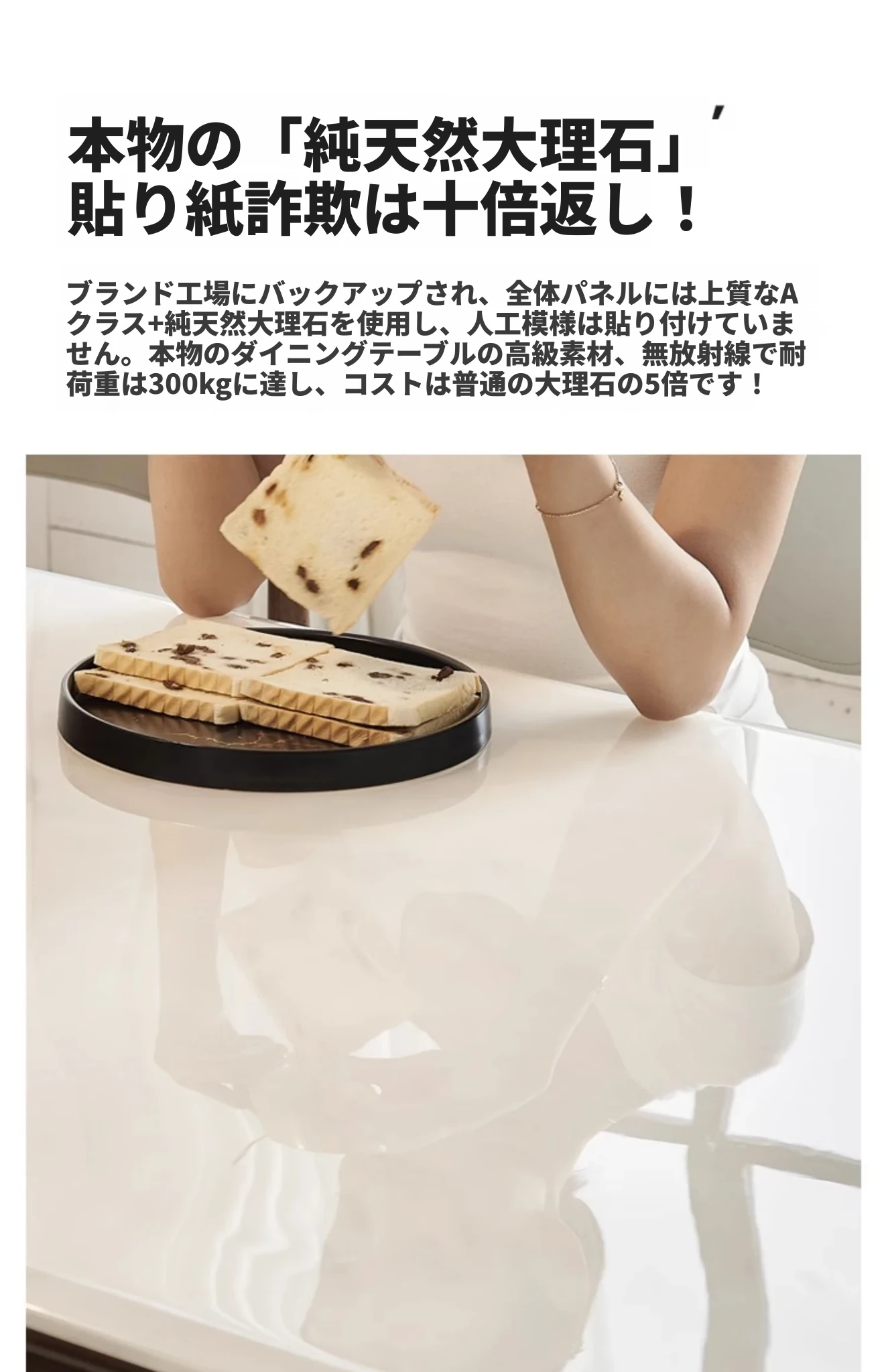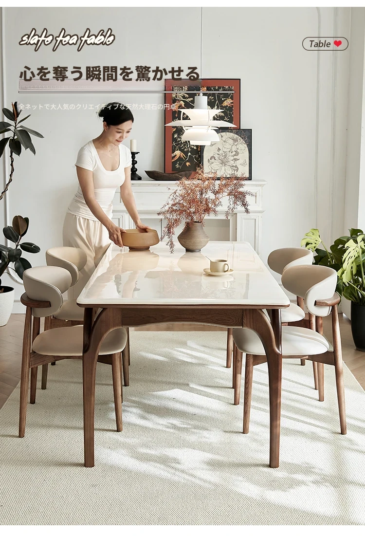 1.8メートル長のダイニングテーブル【本物の天然大理石天板】