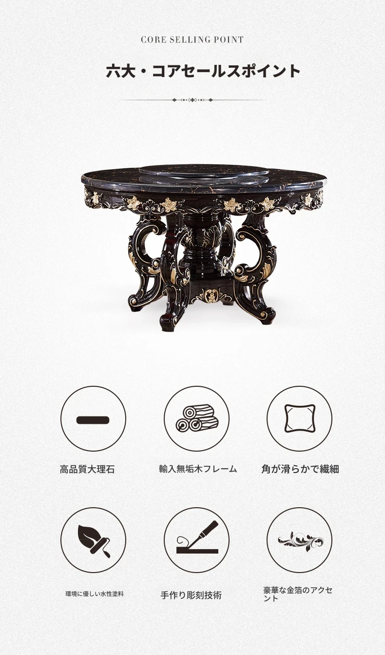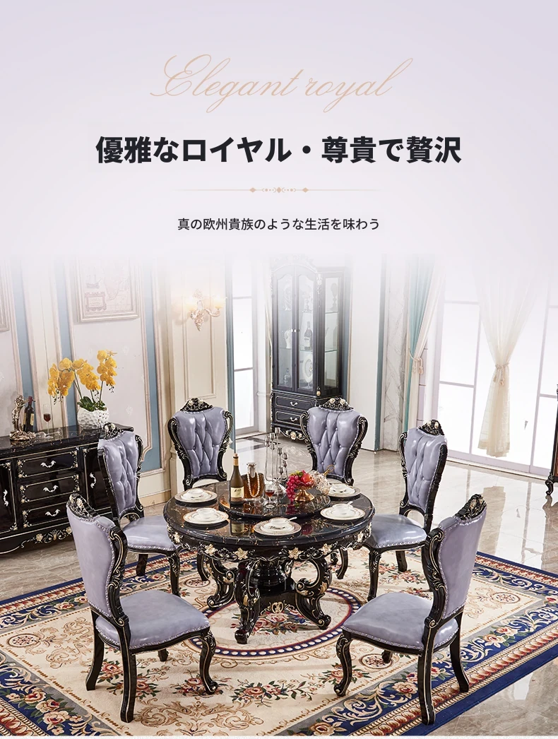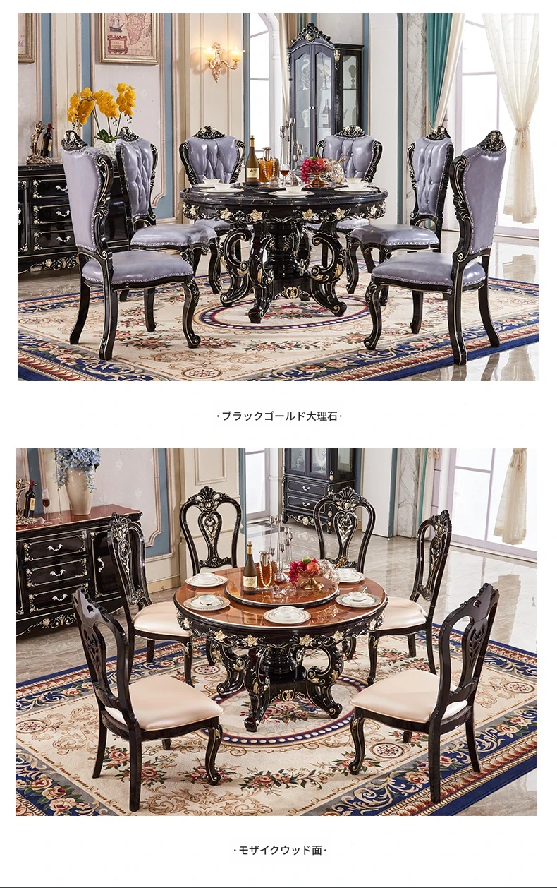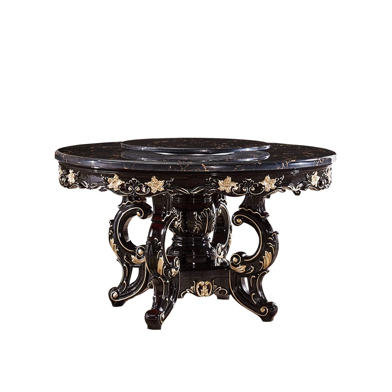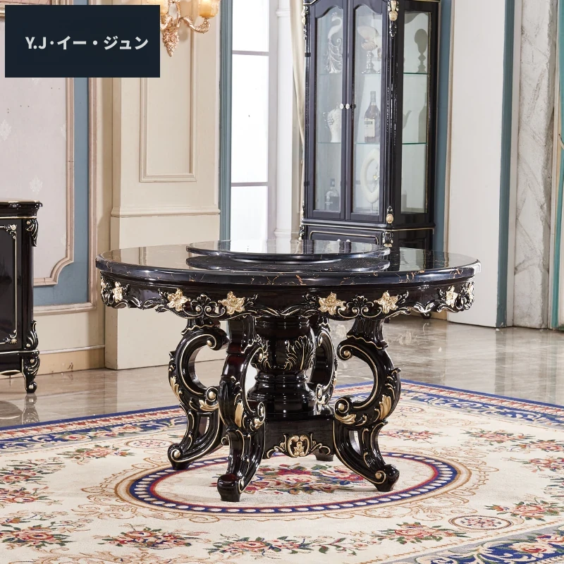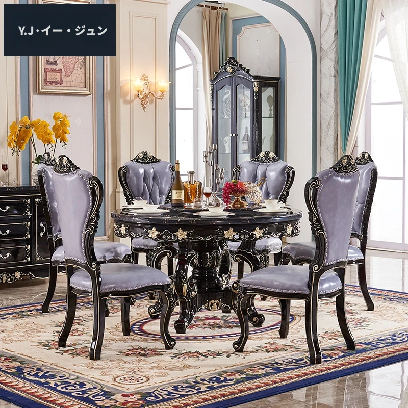 ヨーロピアンスタイルの円形ダイニングテーブル!アメリカンヴィンテージデザインの全木製テーブル、家庭用に最適。回転式大理石テーブルと椅子のコンビネーションで、おしゃれな食卓を演出します。