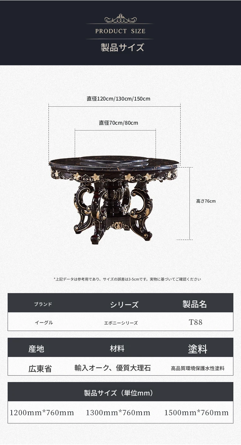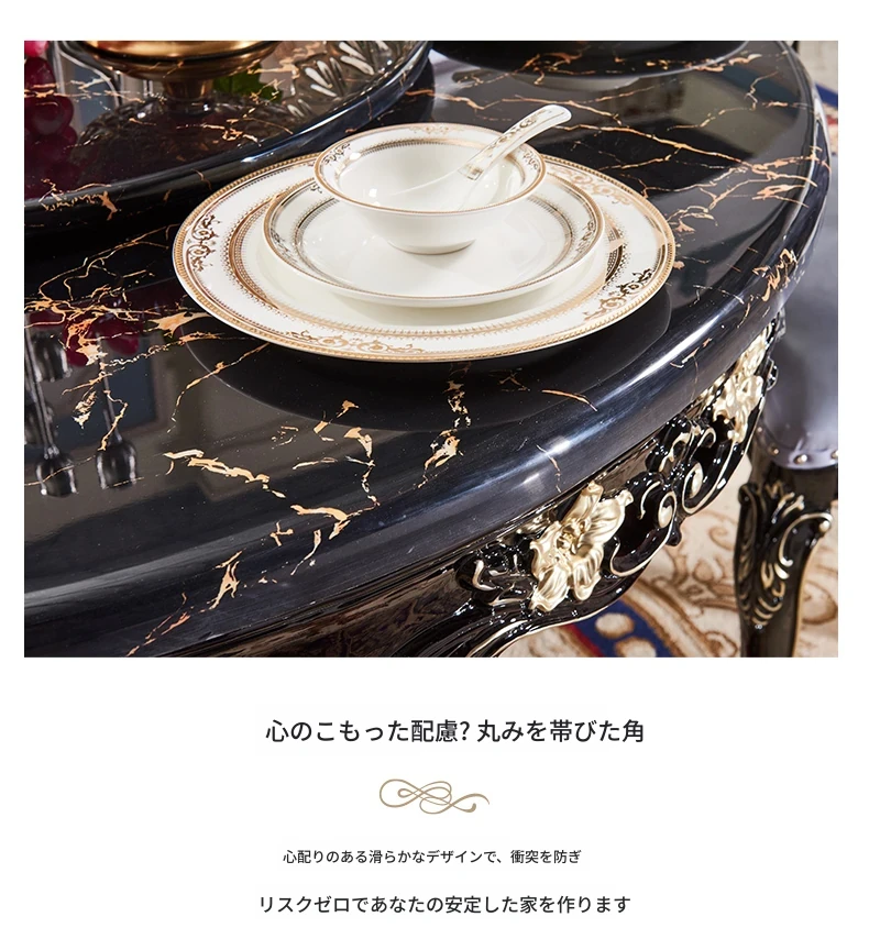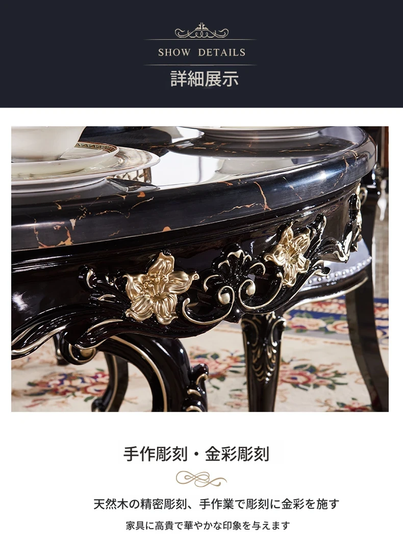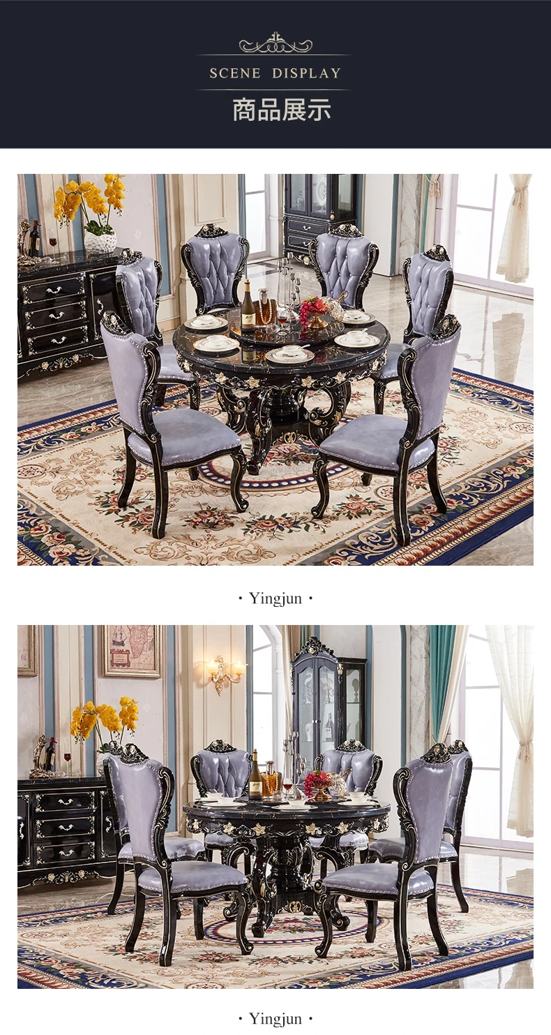 ヨーロピアンスタイルの円形ダイニングテーブル!アメリカンヴィンテージデザインの全木製テーブル、家庭用に最適。回転式大理石テーブルと椅子のコンビネーションで、おしゃれな食卓を演出します。