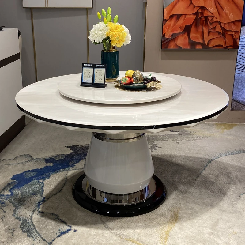 1テーブル8椅子1.6メートルテーブル1メートル回転盤超微細皮革椅子