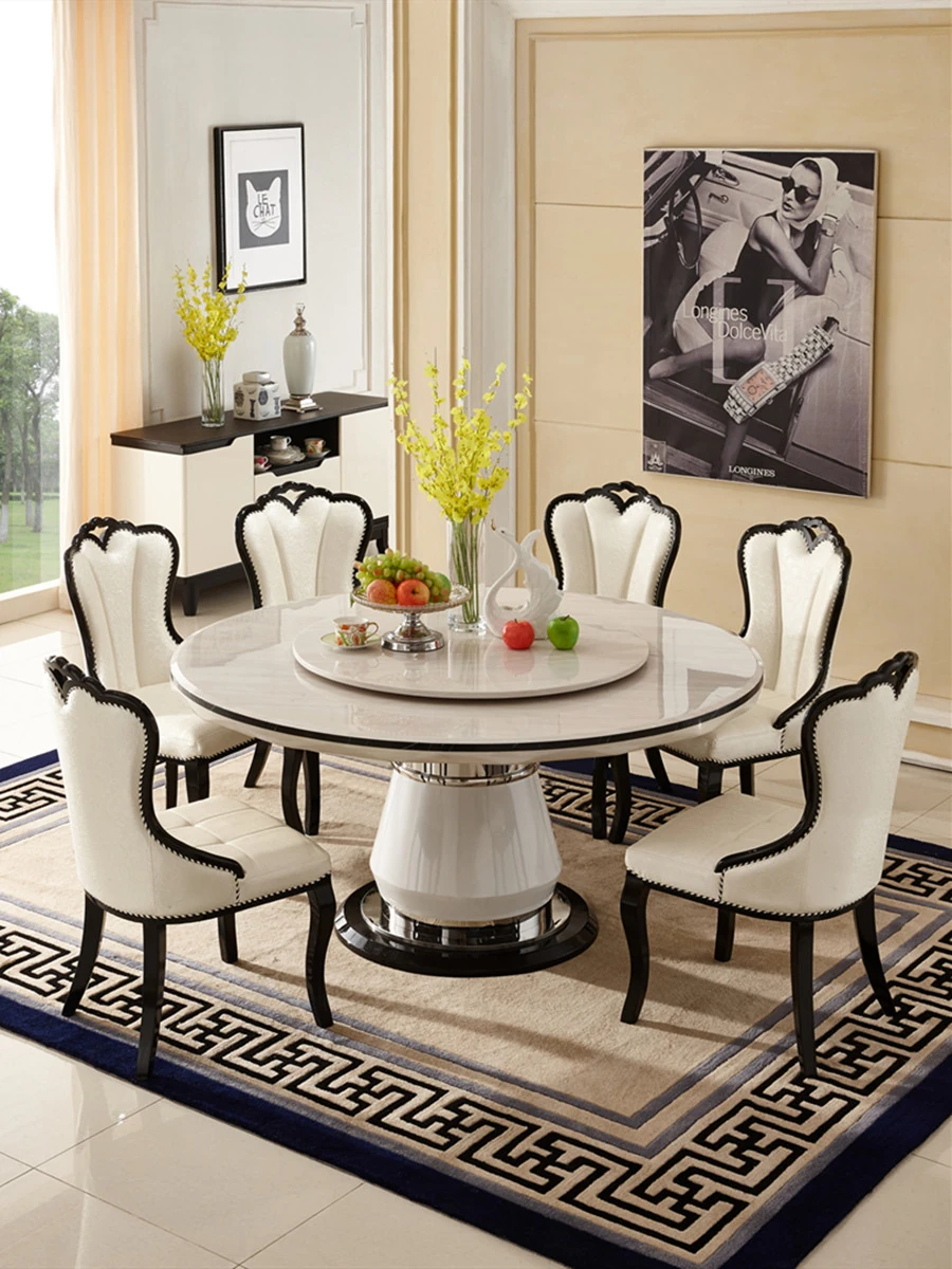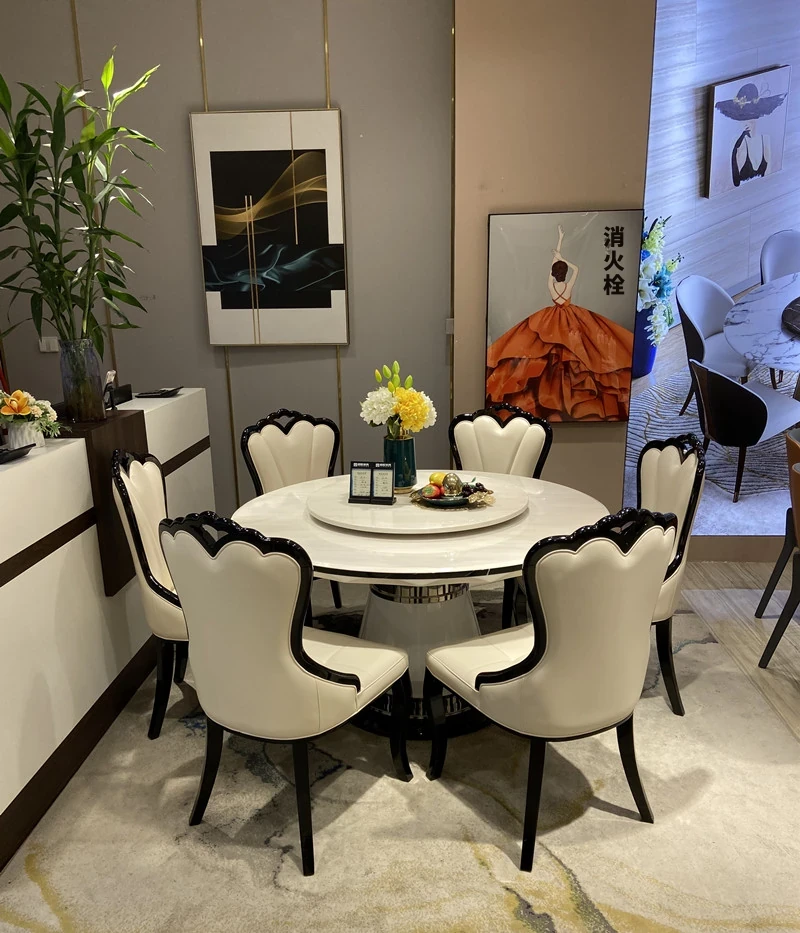 1テーブル6椅子1.2メートルテーブル70回転盤超微細皮革椅子