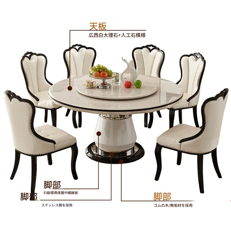 1テーブル6椅子1.6メートルテーブル1メートル回転盤PUレザー椅子